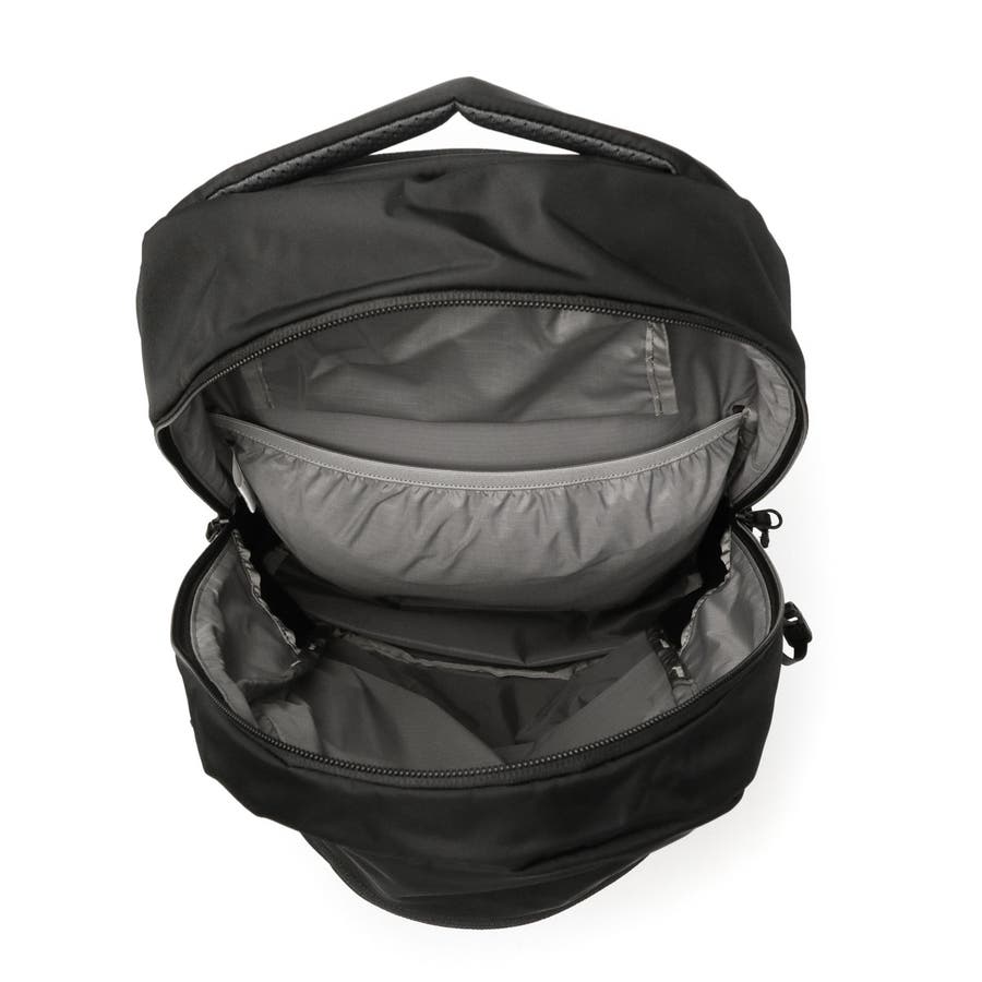 本体と同色のロゴがあしらわれたシンプルなデイパックです。こちらのデザインは汎用性が高く、学校やビジネスなどのデイリーからハイキングなどのアウトドアフィールドまで、幅広いシーンに対応。また、荷物を効率的に収納できるポケットや、体への負担を軽減する柔らかい背面パッドなど、実用性のある機能面も魅力です。