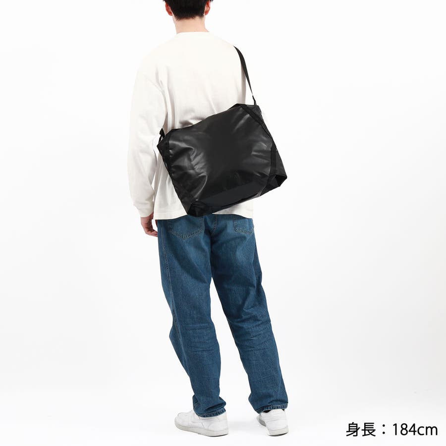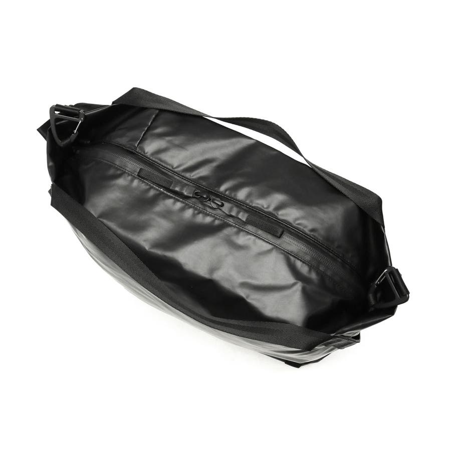 様々なスタイルに合うユニセックスデザインに、多彩なポケットが充実した「身につける」ショルダーバッグ。独特の光沢感を放つ本体は、中身によって形を変えるしなやかさを持っています。また耐水圧30,000mmの素材に止水ファスナーを併せて使用する事で、より防水性を高めた仕上がりになっています。ショルダーストラップは取り外し可能で、トートバッグとしても使える2WAYアイテムです。