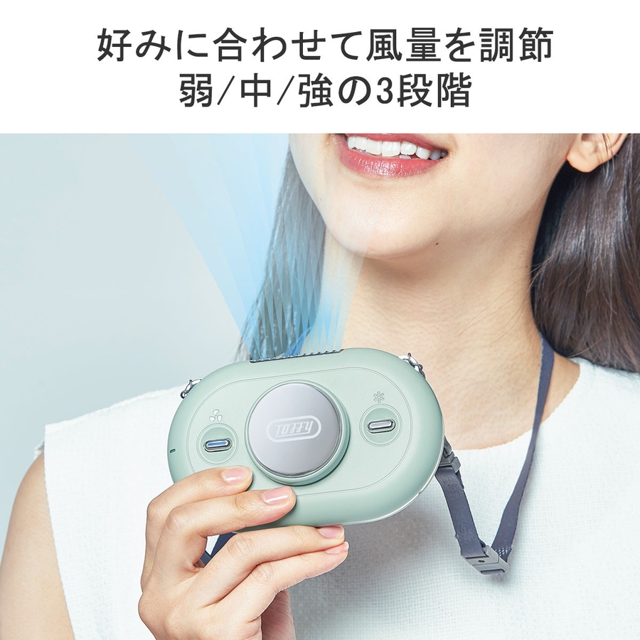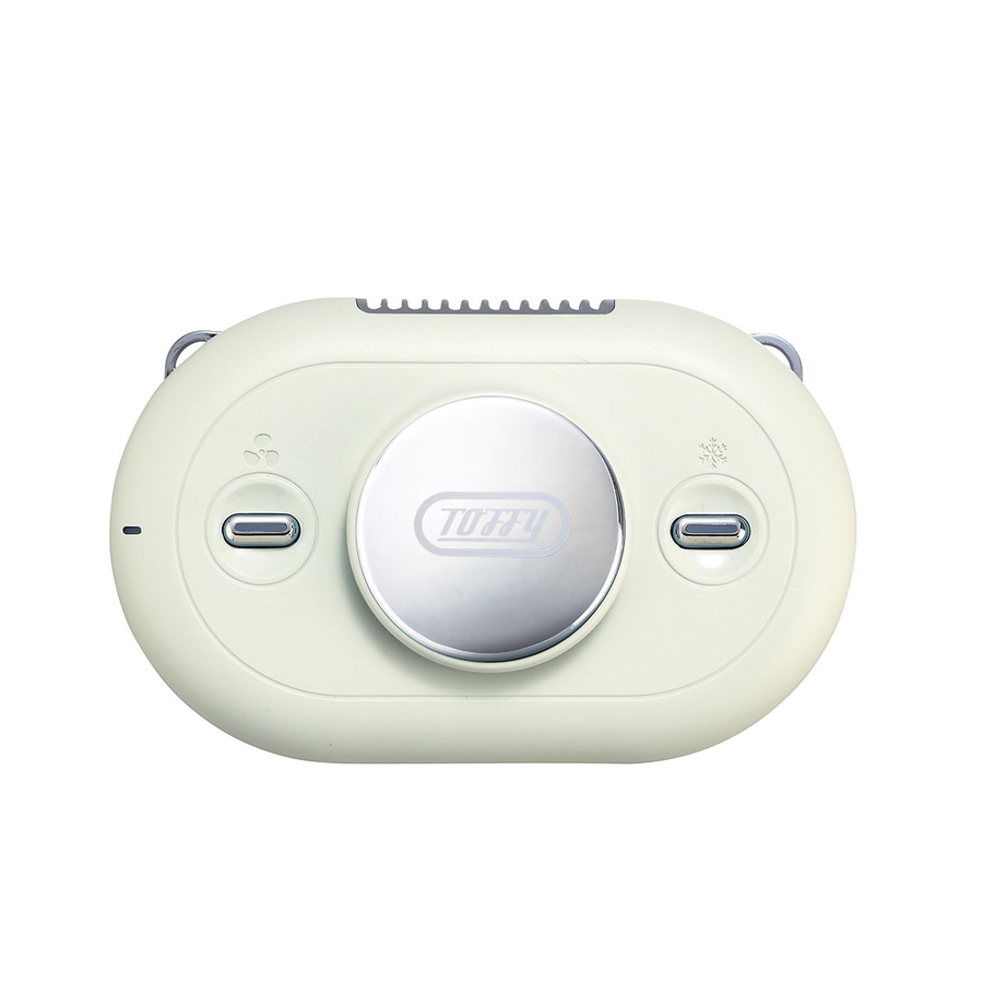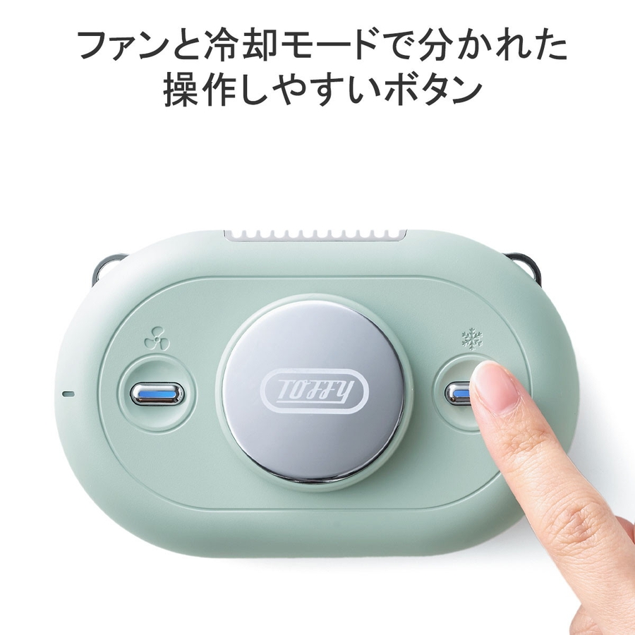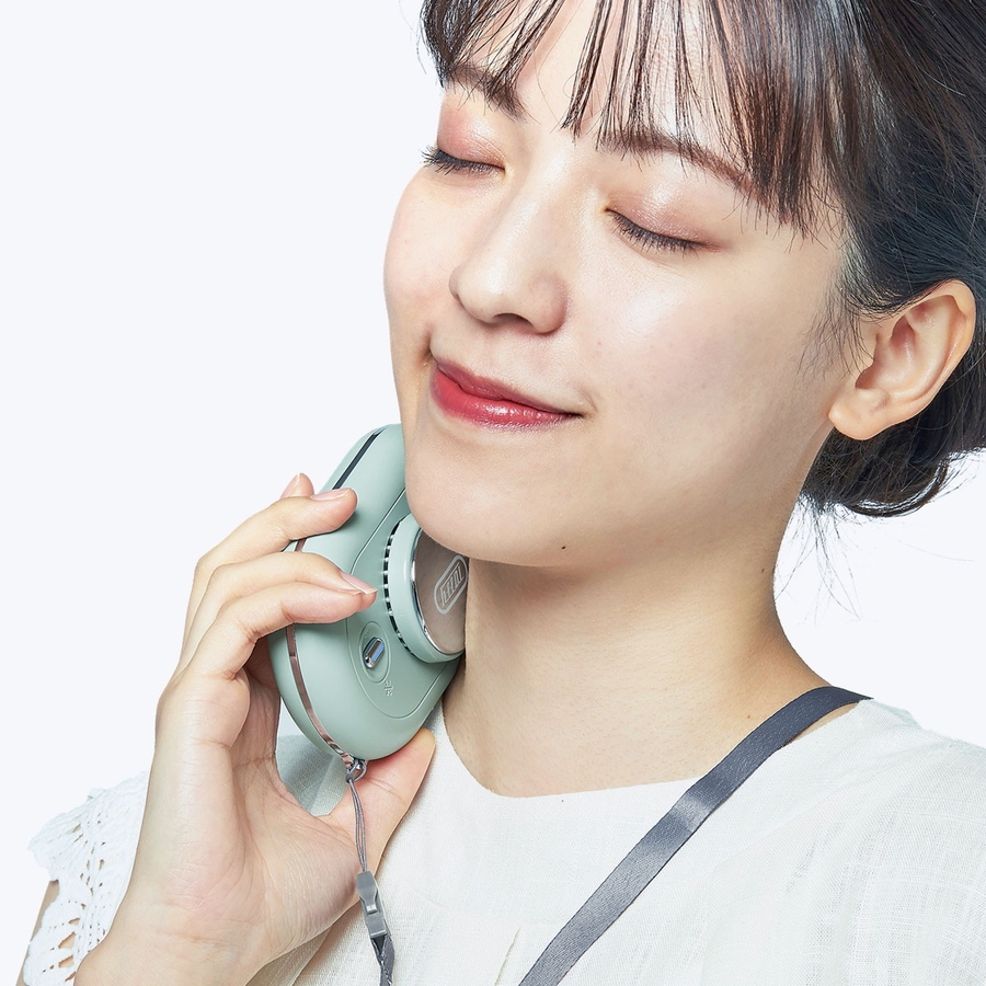 冷却プレートを搭載した、首に下げるだけで使えるハンズフリーファン。ファンの風と冷却モードでボタンが分かれており、シーンに合わせて2通りの涼み方を楽しめます。冷却プレートはひんやりと冷たくなるため、直接肌に当てることで、火照った体を瞬時にクールダウン。カメラのような可愛らしい見た目と、両手が自由に使えるストラップ付きで、夏のイベントの際に大活躍です。