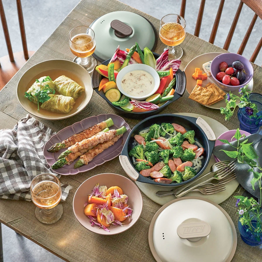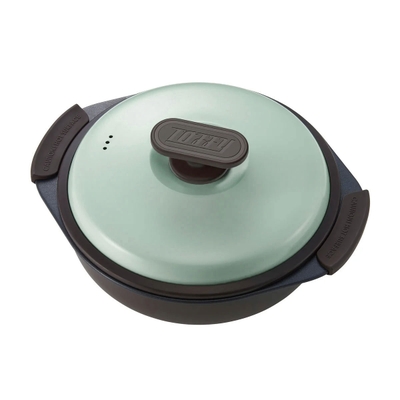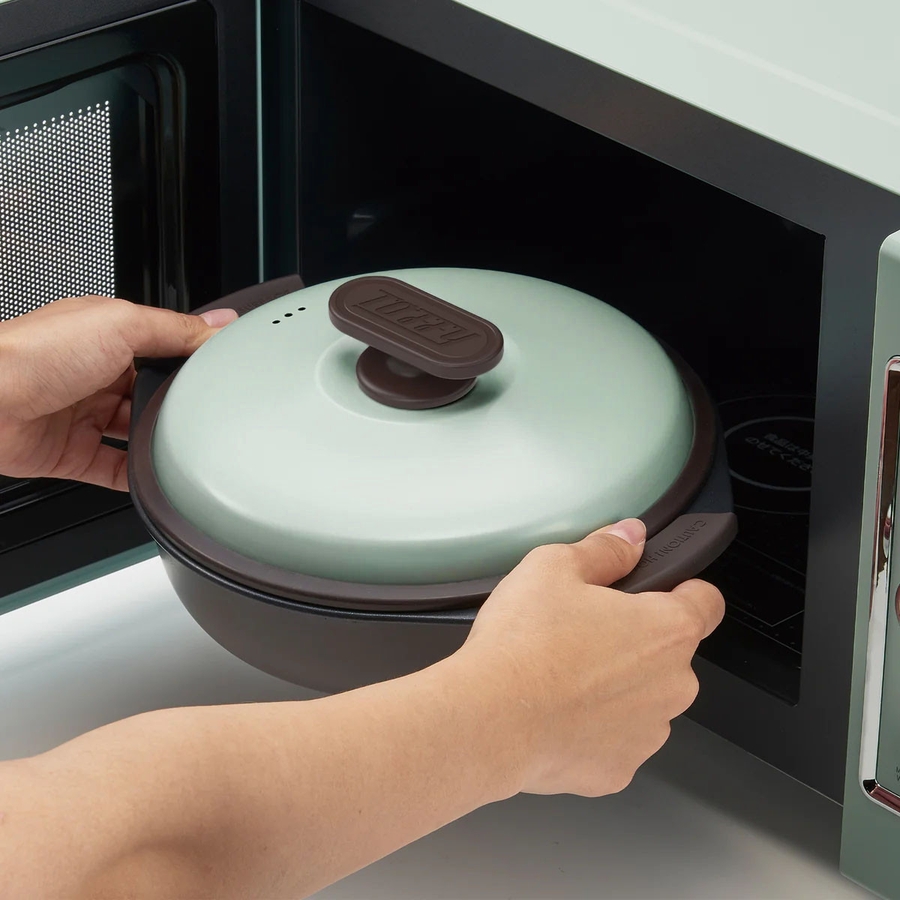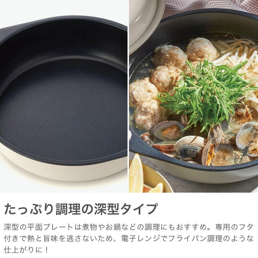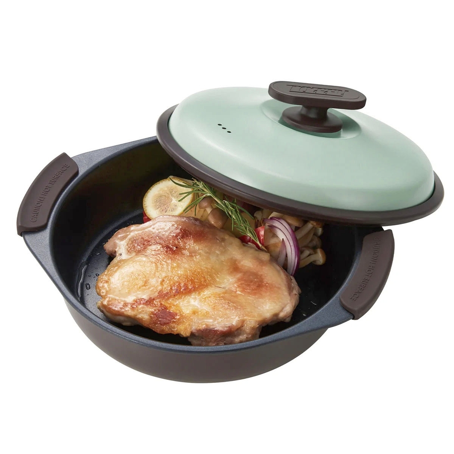 1台6役の電子レンジ調理専用グリル鍋。たっぷり作れるフタ付きの深型鍋で、焼く、炒める、蒸す、茹でる、炊く、煮るが電子レンジで全部完了!時短調理で忙しい毎日にぴったり。おしゃれなレトロデザインで、一人暮らしや新生活のプレゼントにもおすすめです。
