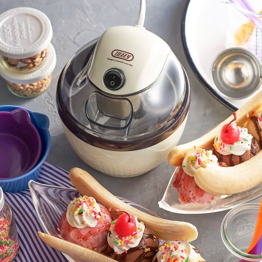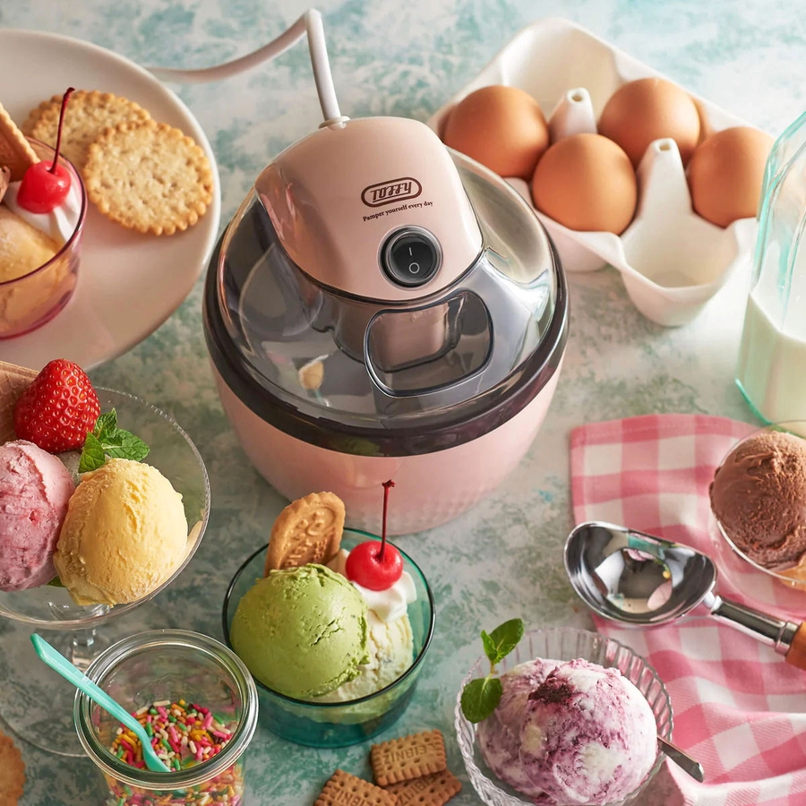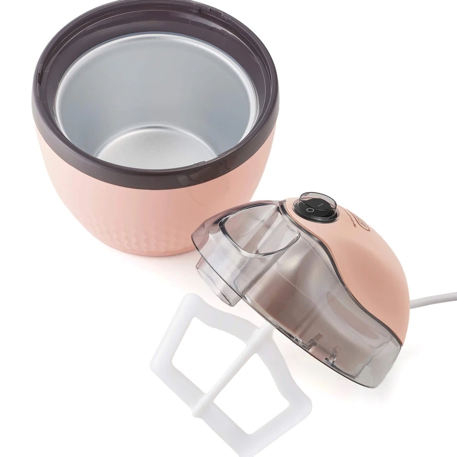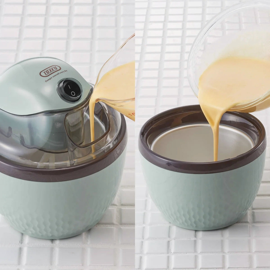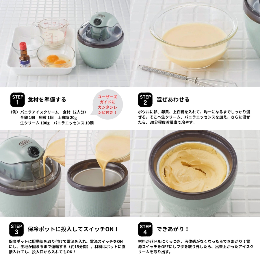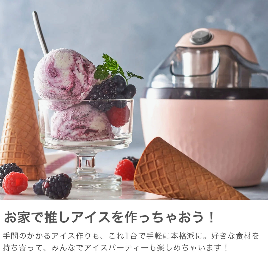 かわいいフォルムでパーティでも映えることまちがいなしのアイスクリームメーカー♪保冷ポットを冷凍庫で冷やした後は、材料を入れてスイッチを入れるだけで約15分で自家製アイスクリームのできあがり!ふたの食材投入口から食材を追加できるからアレンジもできちゃう優れモノ♪付属のユーザーズガイドにはカンタンレシピが付き、食材が触れる部分は丸洗いできるので衛生的なのもポイントです!