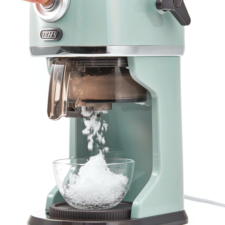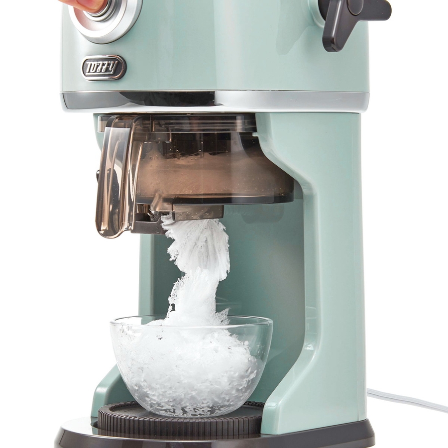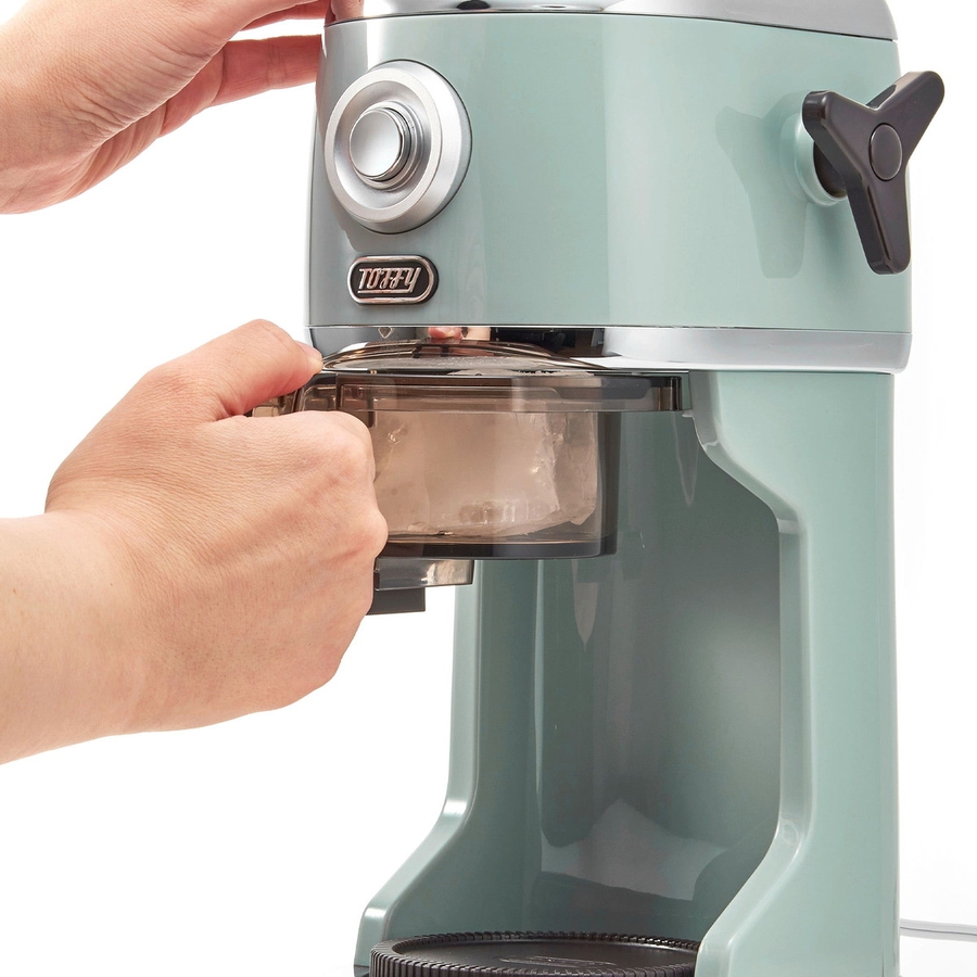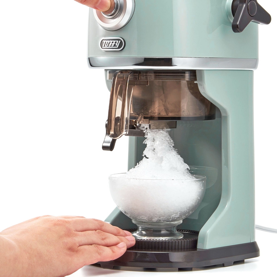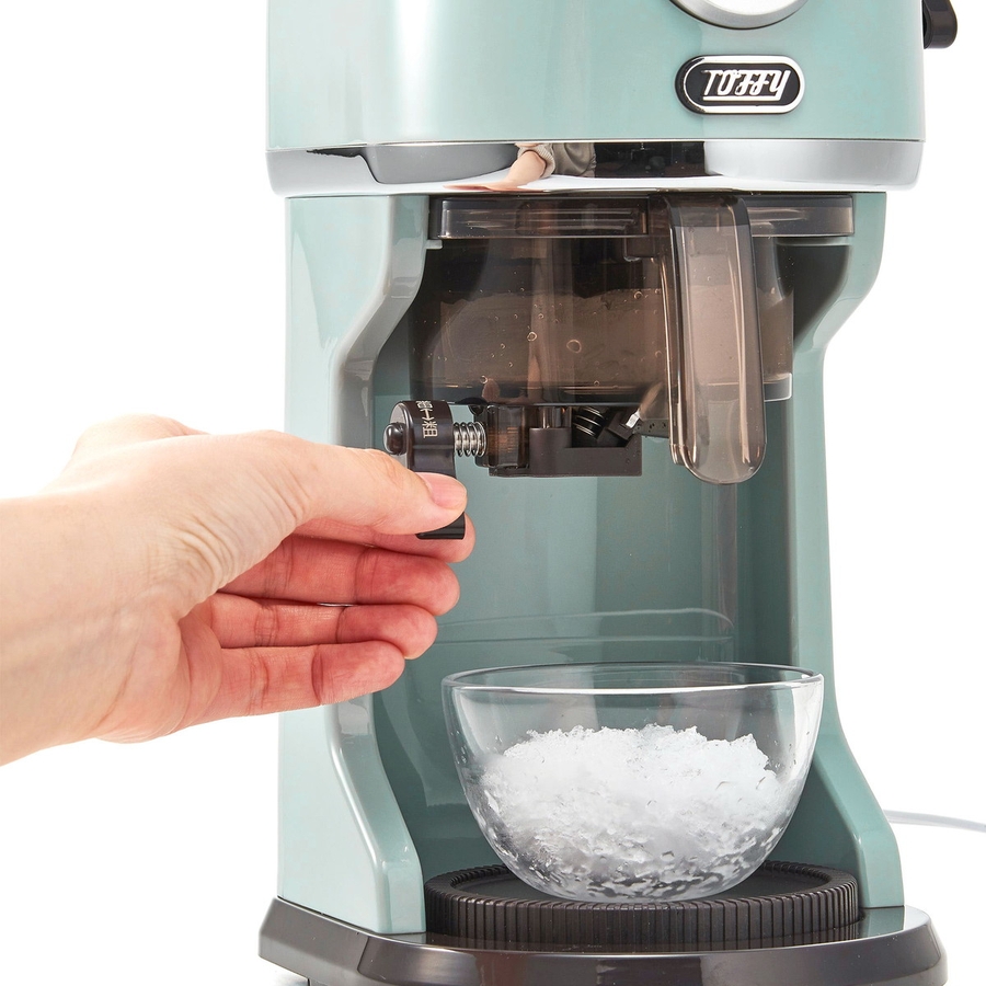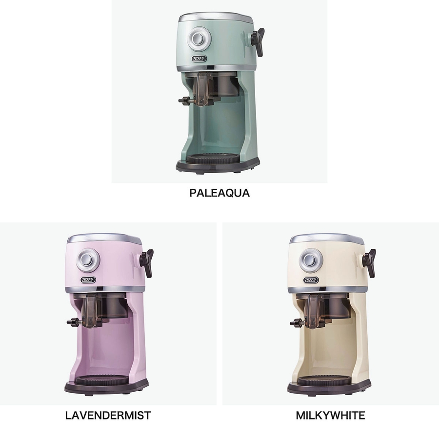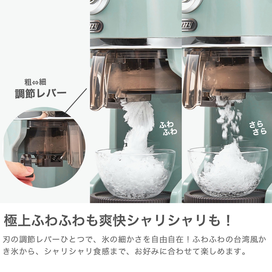 レトロでかわいい見た目に、簡単&本格派の機能をぎゅっと詰め込んだ電動かき氷器。ふわふわ食感はもちろん、ハーフ氷やミックス氷にも対応しています。お皿を回しながら削れる“回転プレート”で、盛りつけも楽しく!おうち時間やパーティーに映える、おしゃれなひと品です。
