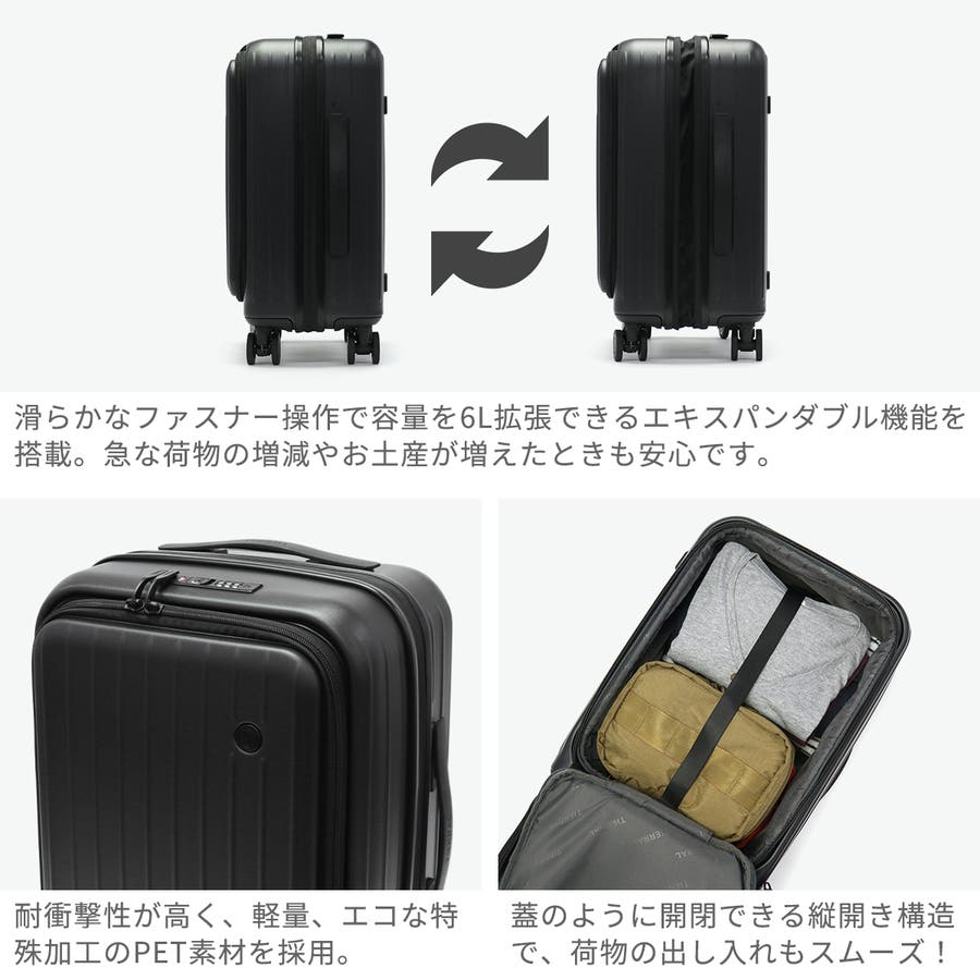 ・エキスパンダブル機能付きの製品は、マチ拡張時の3辺の和が機内持ち込みサイズ、預け入れ無料サイズを超える場合がございます。また、航空会社や飛行機の機種などによって規定が異なりますので、予めご確認の上お求めください。