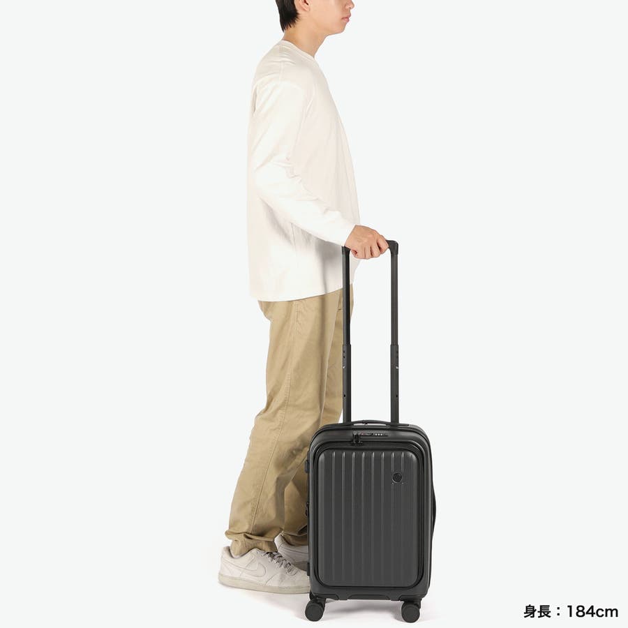 超軽量ボディに拡張機能を備えたSサイズスーツケース。機内持ち込みに対応し、縦に開くフロントオープン仕様で荷物の出し入れもスムーズ。スタイリッシュなデザインとカラーリングでユニセックスでお使いいただけるのも嬉しいポイント。その他にも盛りだくさんの機能を備えた充実装備のアイテムです。