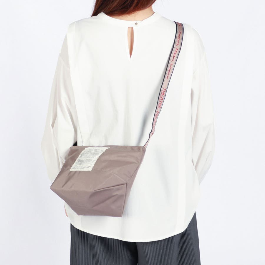 「ミシシッピ」トートバッグのデザインを引き継いだショルダーバッグ。耐久性に優れ、上品な光沢感が特徴のナイロン素材を使用し、どんなコーデにも合わせやすい仕上がりです。広めのマチが、独特のフォルムを生み出しつつ、しっかりとした収納力を確保。実用性とデザイン性を兼ね備えたユーティリティアイテムです。