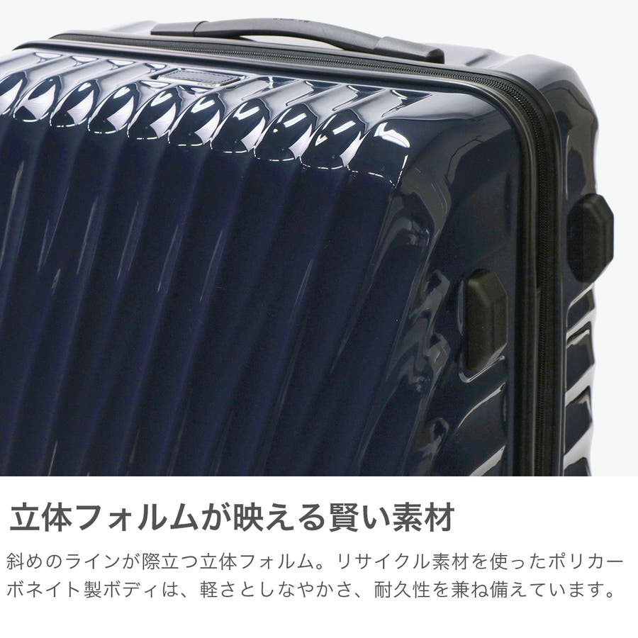 立体的なデザインと拡張機能、モダンなシルエットが特徴の「19 DEGREE COLLECTION」。本体はリサイクル素材を使用し、軽量で柔軟性がありながらも高耐久な仕上がりが魅力です。出張や長期旅行にも頼れる67Lの大型サイズで、快適な旅をサポートします。