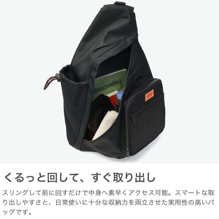 懐かしさと新しさを併せ持ったデザインが魅力のボディバッグ。身体にフィットする流れるようなフォルムで、アクティブな日常に心地よく寄り添います。スリングして中身を取り出せる快適な仕様で、収納力も十分。車内でもストレスなく利用できます。ショルダー部分のポケットにはスマホを入れることもでき、マチ付きフロントポケットやメッシュポケットなど使いやすさを追求した作りが魅力です。
