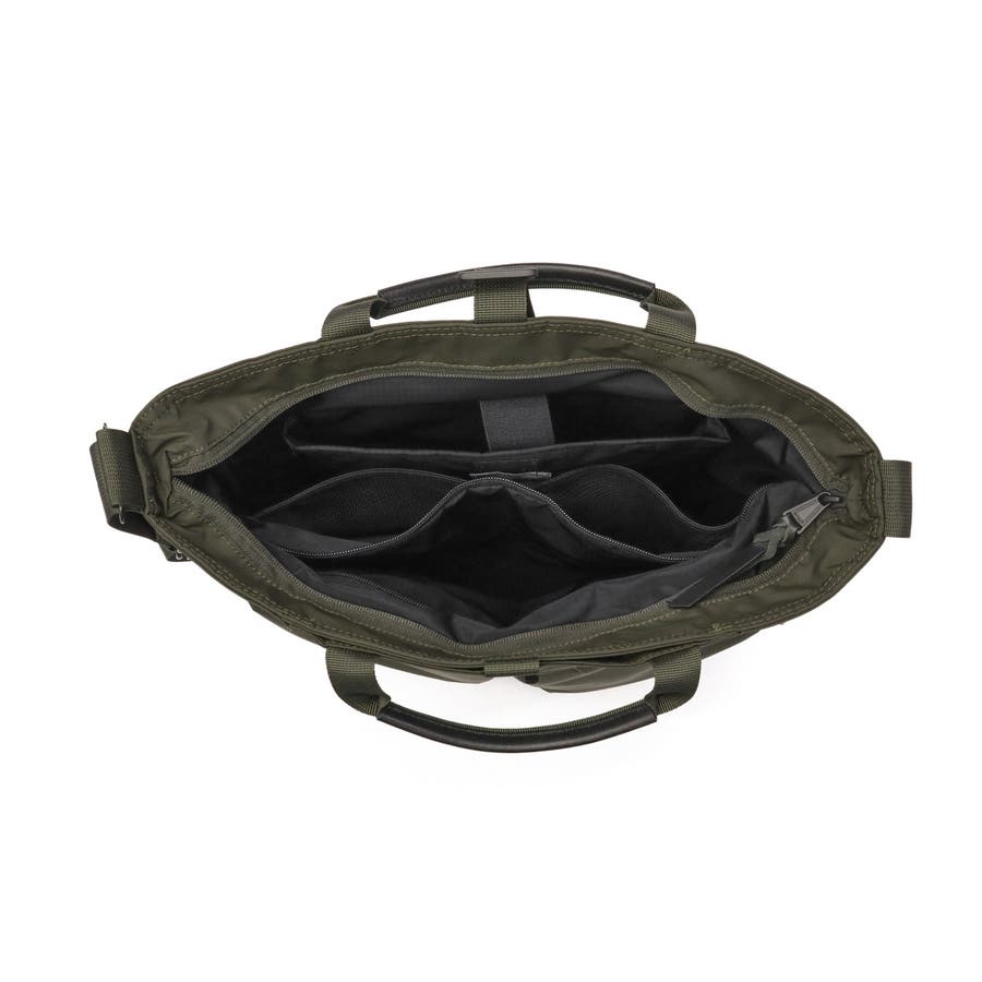 都市生活にフィットする、シンプルかつ機能的なバッグシリーズ『CITY/3LS』。今回の「CITY」シリーズでは、アクティブウェアにも使われる撥水性に優れた3層構造の高機能素材を新たに採用。こちらはUS軍ヘルメットバッグのデザインをベースに作られたトートショルダーバッグです。都会的な洗練さとアウトドアのタフさを両立させ、どんなシーンにも馴染むオーセンティックなデザインが魅力です。