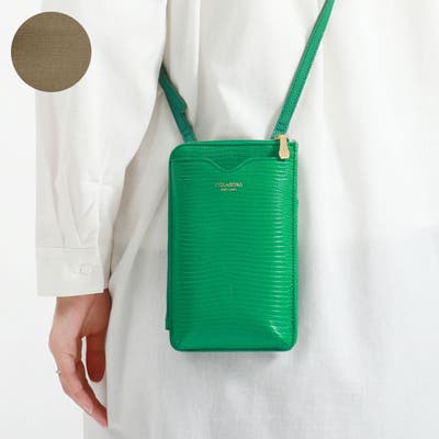 リザードの型押しがスタイリッシュな印象を演出するポシェット。スマートフォンケースとお財布が一体になったつくりで、普段のちょっとしたお出掛けからトラベルシーンまで幅広く活躍するアイテムに仕上がっています。必需品をミニマムに持ち運べる使い勝手の良さで外出時に手放せないアイテムになりそうです。本体背面側にあるファスナーポケット部分には、お札や小銭、カードなどを収納可能。必要なアイテムをコンパクトにまとめらるだけでなく、収納口がL字型になっており、お会計をスムーズに行えるなど、扱いやすさに配慮された設計になっているのもポイントです。フロント部分にはスマートフォンがぴったり収まるポケットを装備。必要時にサッと取り出すことのできる実用的なポケット配置が魅力です。また、本体の背面部分にはカードポケットも設けられており、交通系ICカードなどを収納しておけば、移動の際にも活躍します。