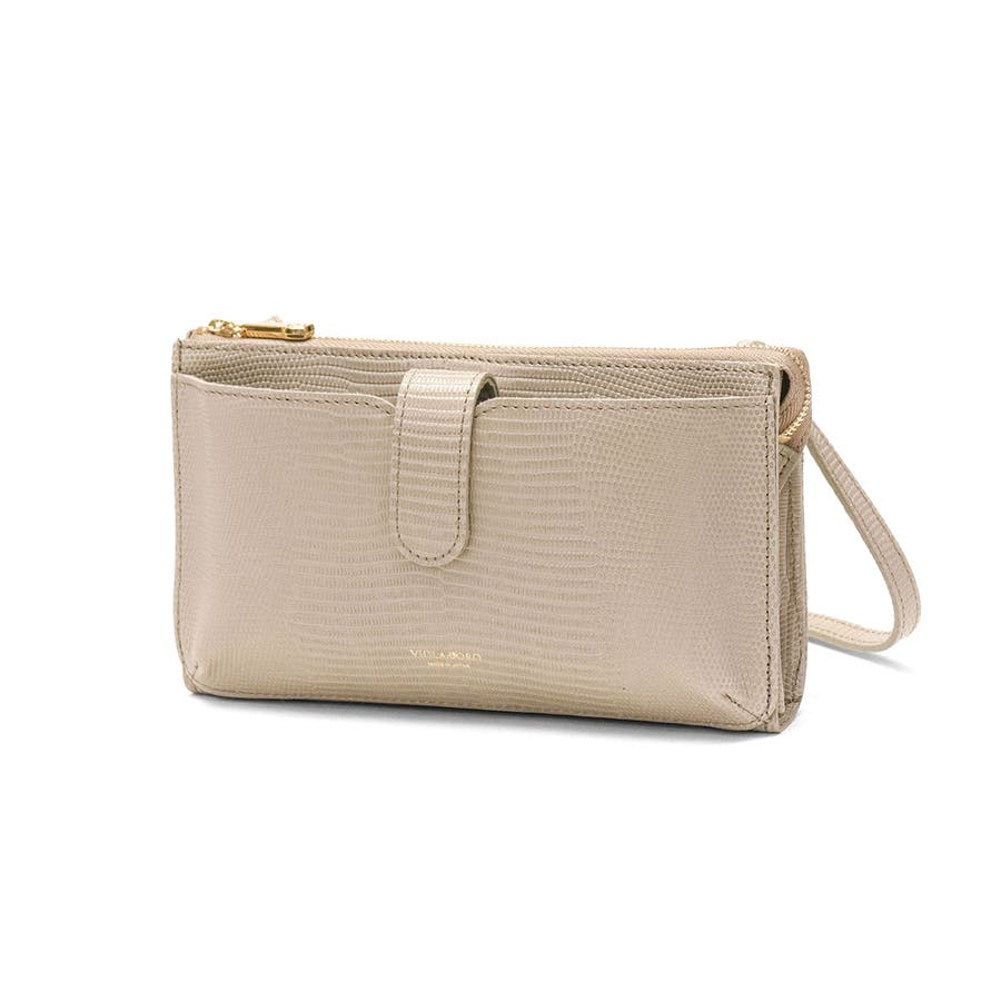 リザードの型押しレザーが女性らしい、横型のスマホポシェット。スマホケースとお財布、両方の役割を一体化した便利な設計で、ちょっとした外出や旅行時に大活躍します。メイン収納には、カードポケットや小銭が入れられるジップポケットを装備。少しマチを設けており、コスメや小物など小さめなアイテムも入れられるマルチなつくりに仕上がっています。