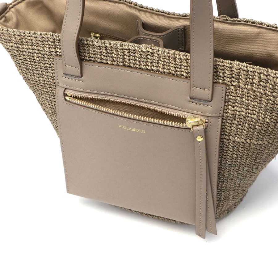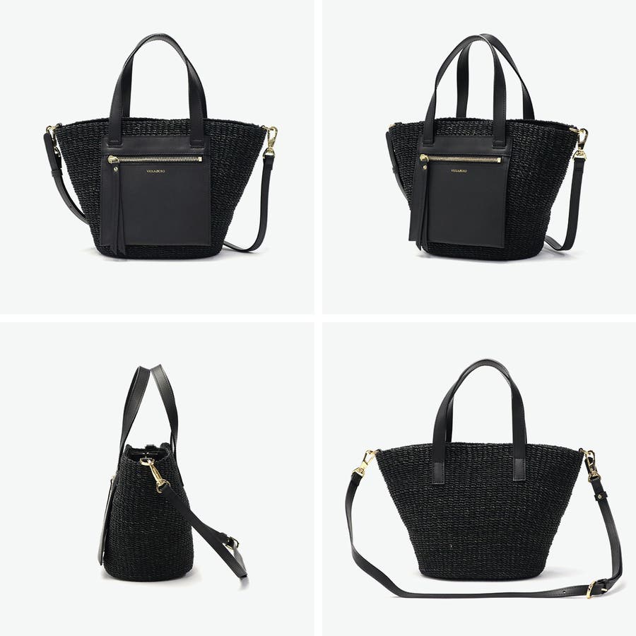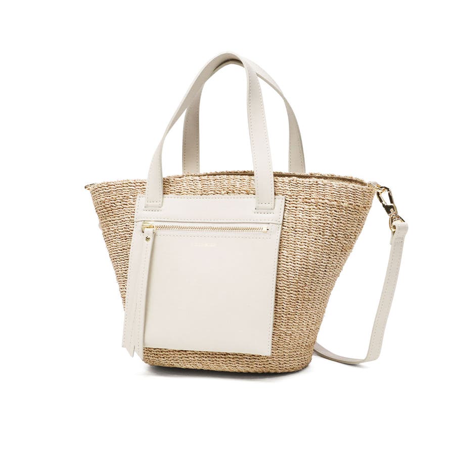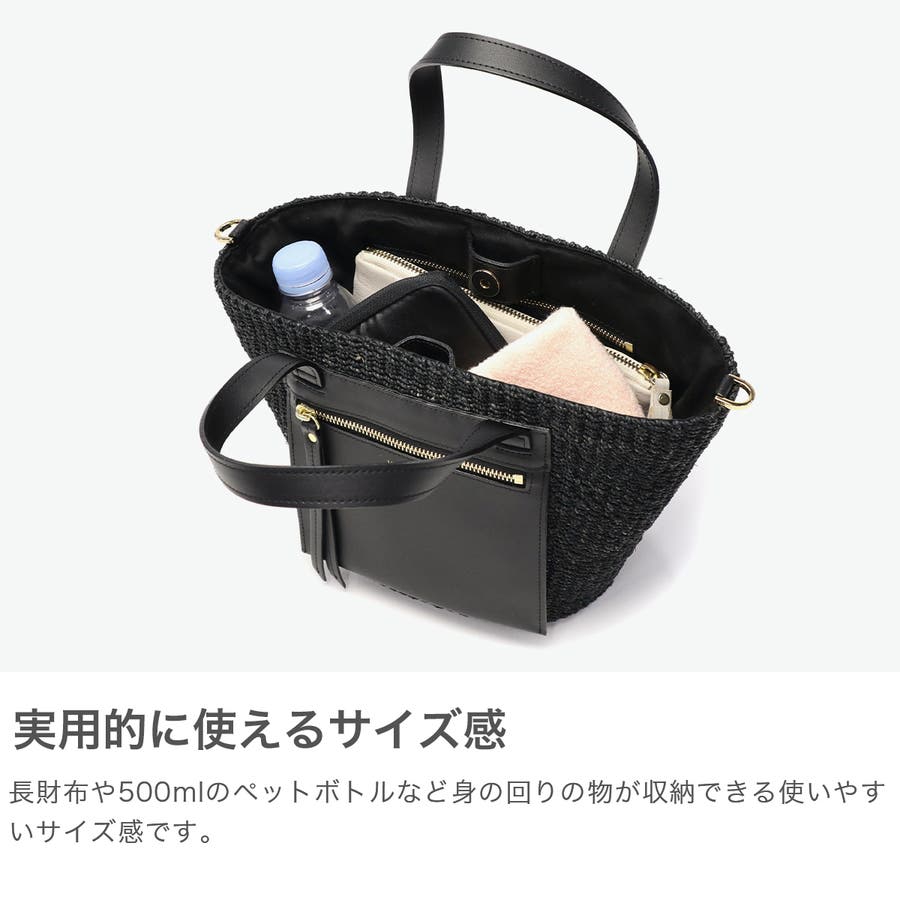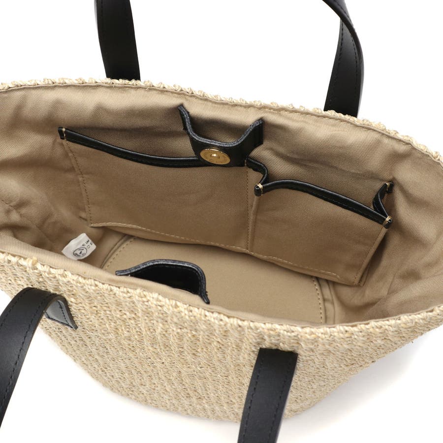 上品な天然素材のファインアバカボディにポケットのデザインがポイントになったトートバッグ。上品かつ可愛らしいデザインで、きれいめにもカジュアルにもマッチします。長財布など身の回りの物が収納できる普段使いに便利なサイズ感も嬉しいポイントです。