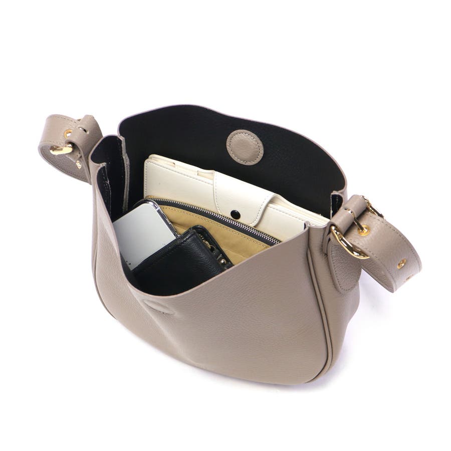 しなやかで傷の付きにくいシボの型押しレザーが上品な『TRERO/トレロ』の2WAYバッグ。ハンドルはお好みの長さに調節ができるので、手持ちや肩掛けなど幅広いスタイリングが楽しめます。薄着の季節であれば斜めがけも可能です。上品に輝くゴールドのハトメデザインが、コーディネートに華やかさをプラスしてくれます。