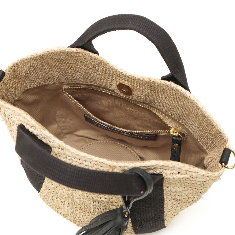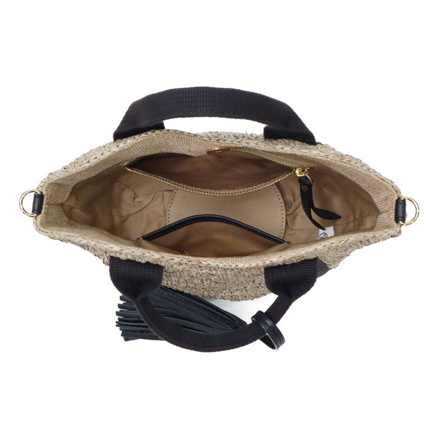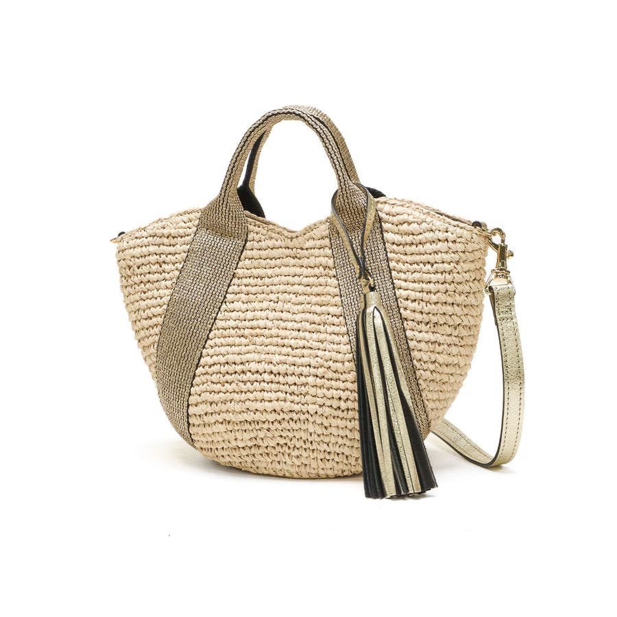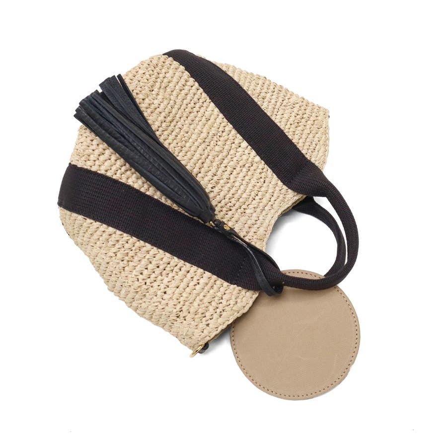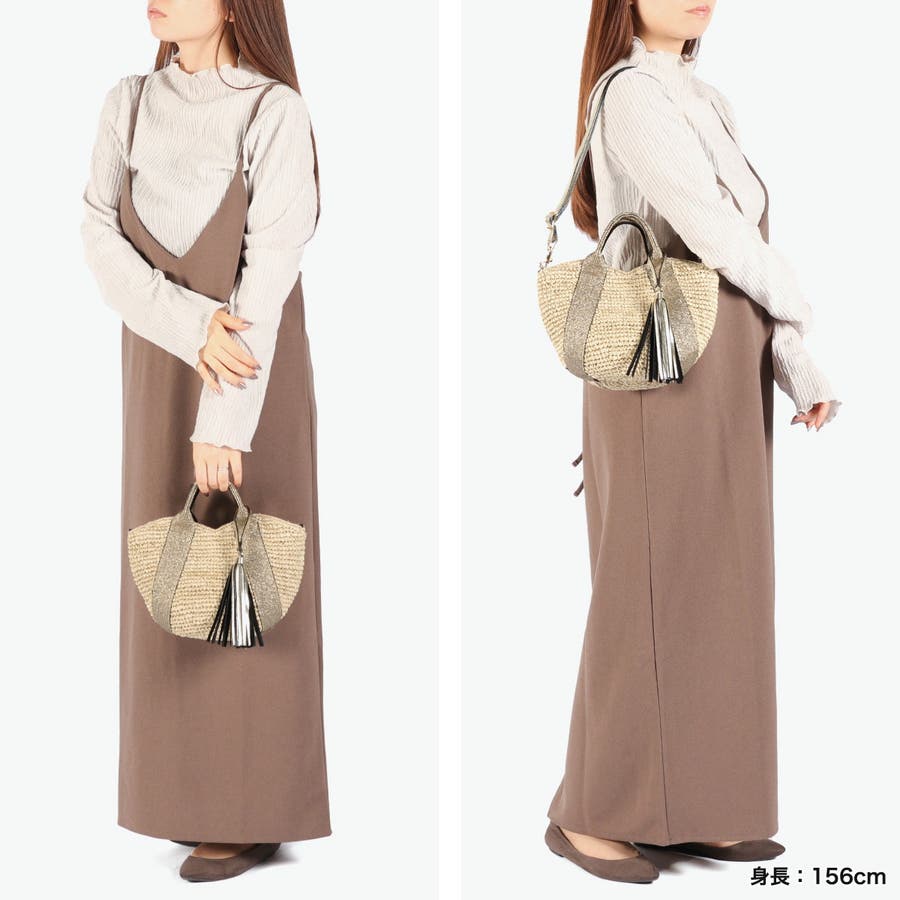 ラフィアで編み上げたボディにテープのハンドルがアクセントになったカゴバッグ。コロンと丸いフォルムと上品に揺れるタッセルが魅力的です。天然素材のカジュアル感がありながらも上品でフェミニンな印象なので幅広いシーンでお使いいただけます。