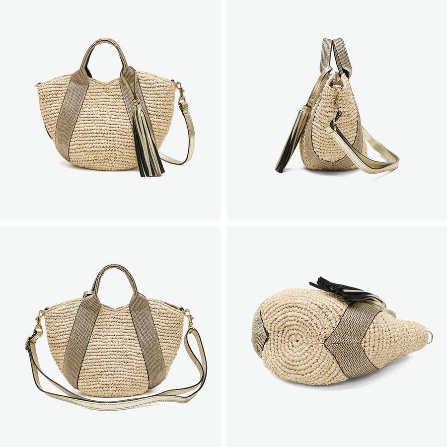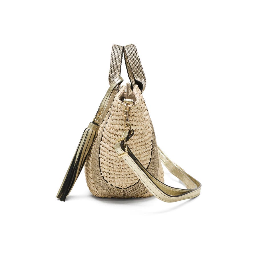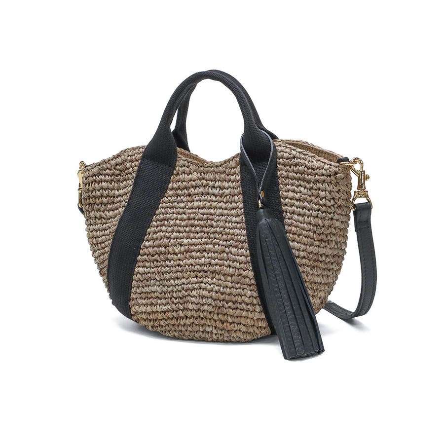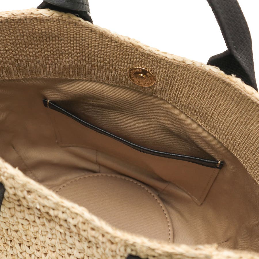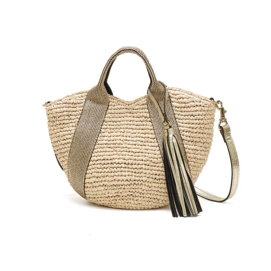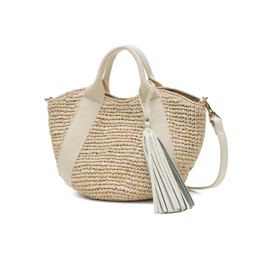 ラフィアで編み上げたボディにテープのハンドルがアクセントになったカゴバッグ。コロンと丸いフォルムと上品に揺れるタッセルが魅力的です。天然素材のカジュアル感がありながらも上品でフェミニンな印象なので幅広いシーンでお使いいただけます。
