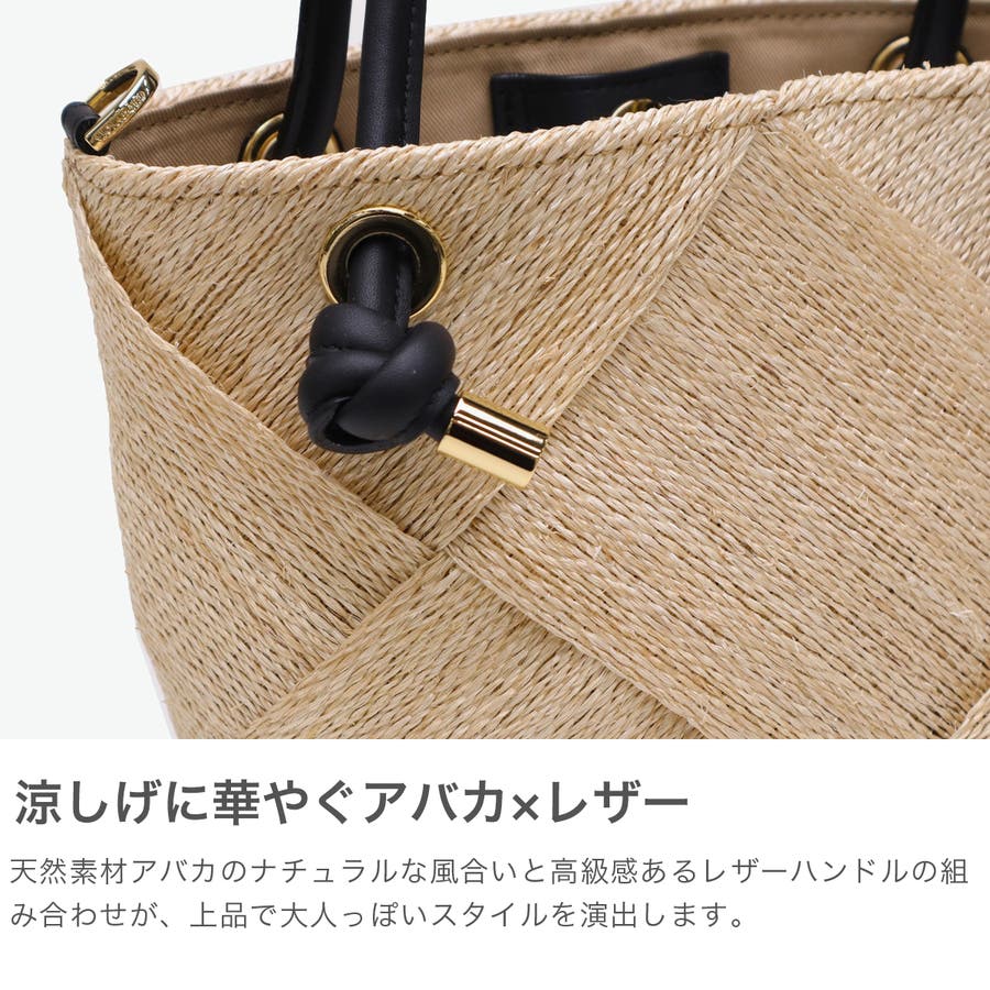季節感ある天然素材のアバカに結び目デザインのレザーハンドルを合わせて、上品な印象を与えてくれる2WAYかごバッグ。テープ状に織ったアバカをざっくりと大きめに編んだメッシュデザインは軽くて涼し気。付属のストラップで斜めがけもでき、きれいめにもカジュアルにも合うデザインがオンオフに活躍してくれます。