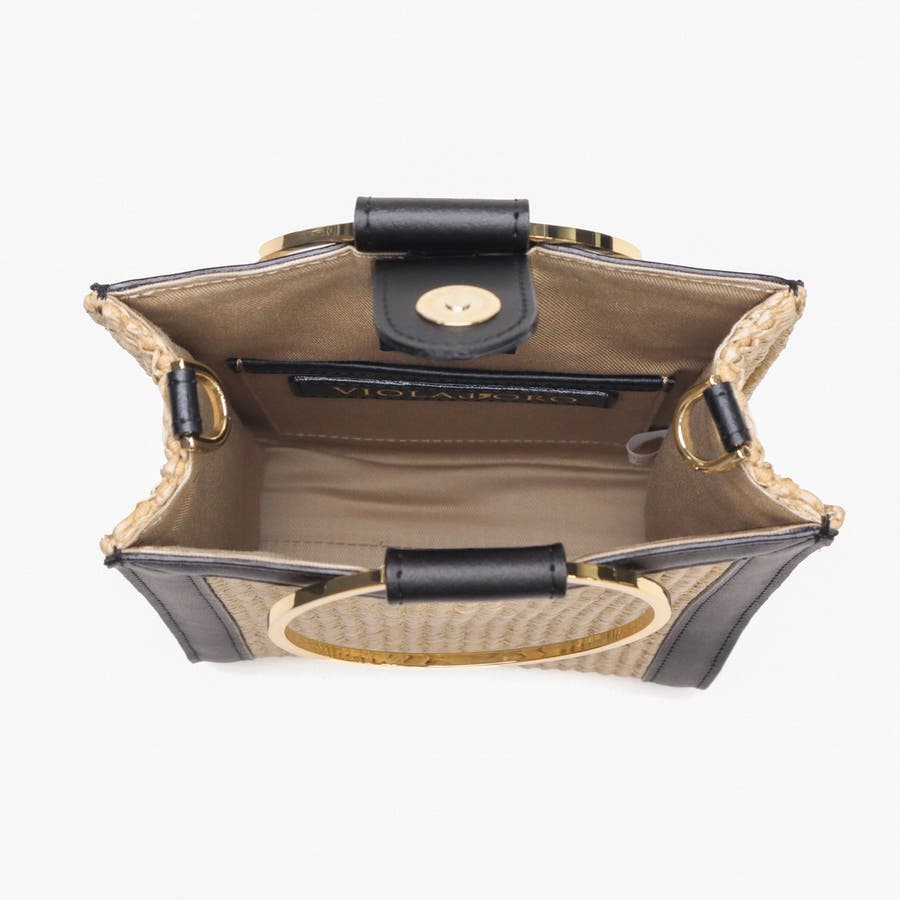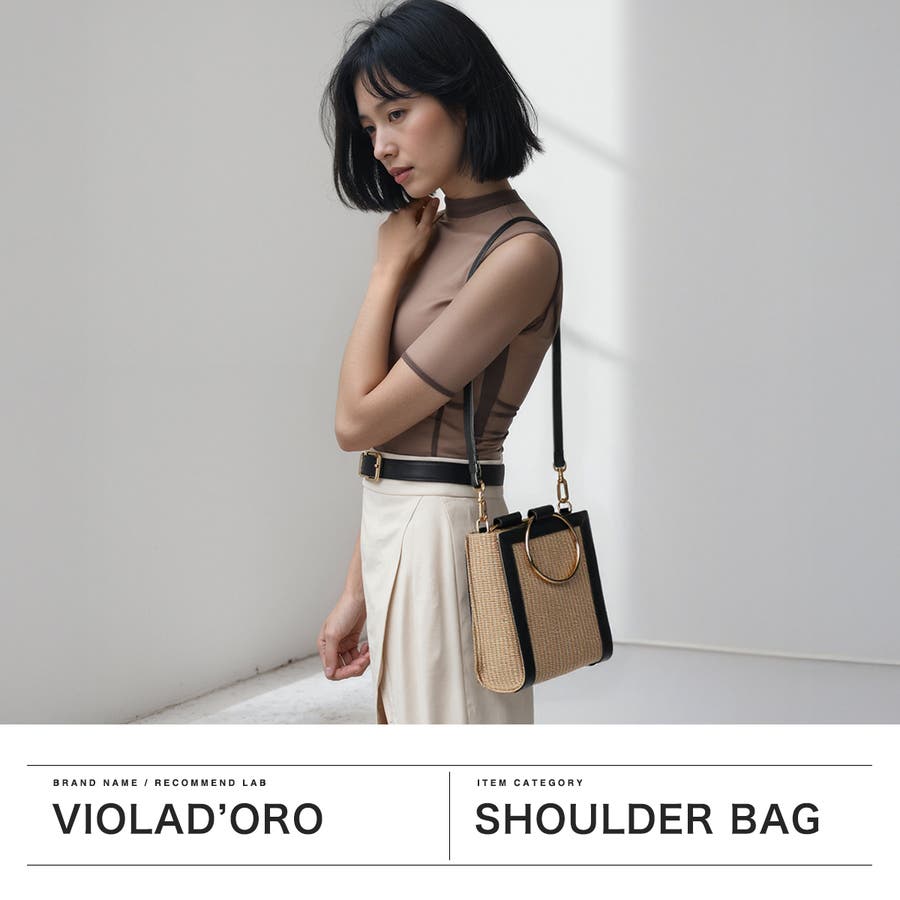 きらりと光るゴールドのリングハンドルとイタリアンレザーの縁取りがアクセントになったショルダーバッグ。柔かい雰囲気とさりげない金具使いで女性らしさを感じられる上品なデザインに仕上がっています。きれいめにもカジュアルにもマッチする、幅広いシーンで活躍するアイテムです。