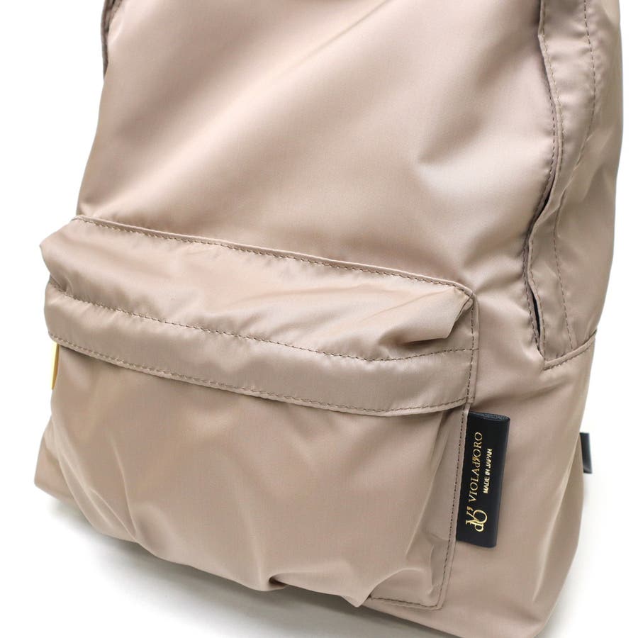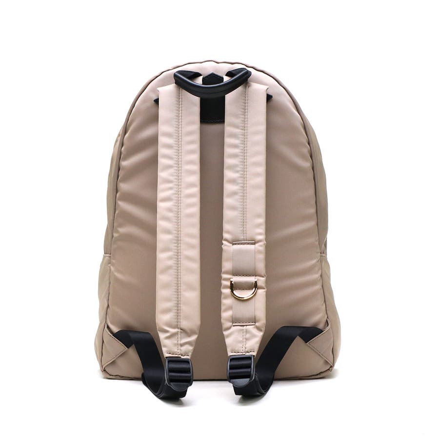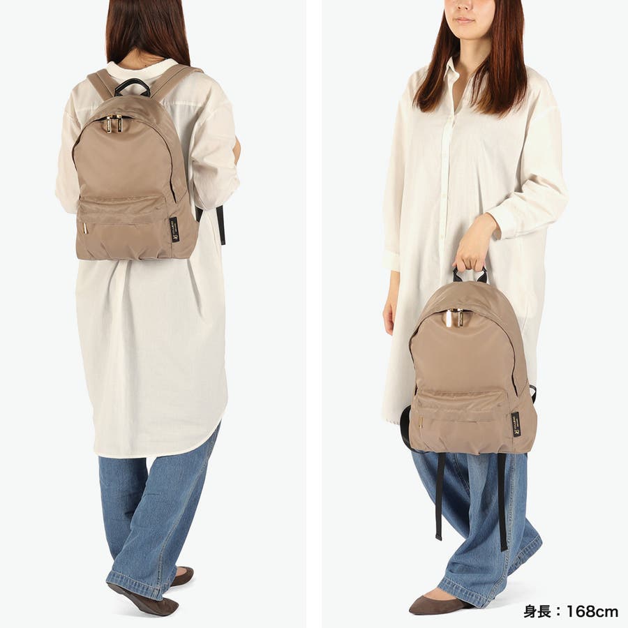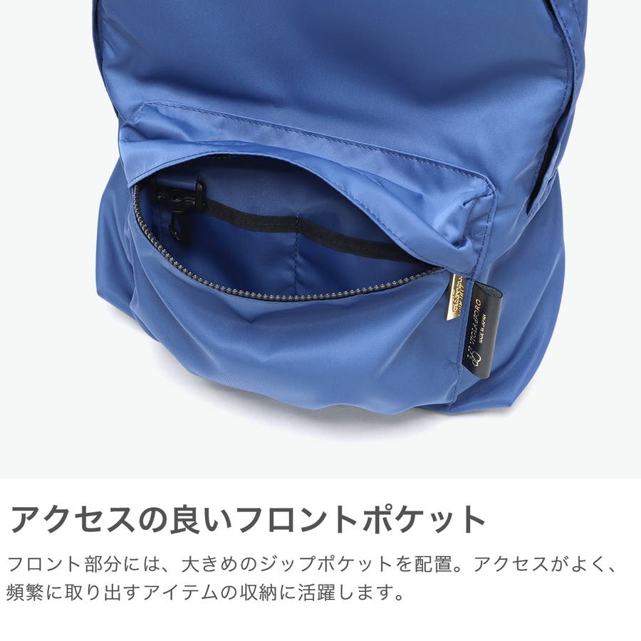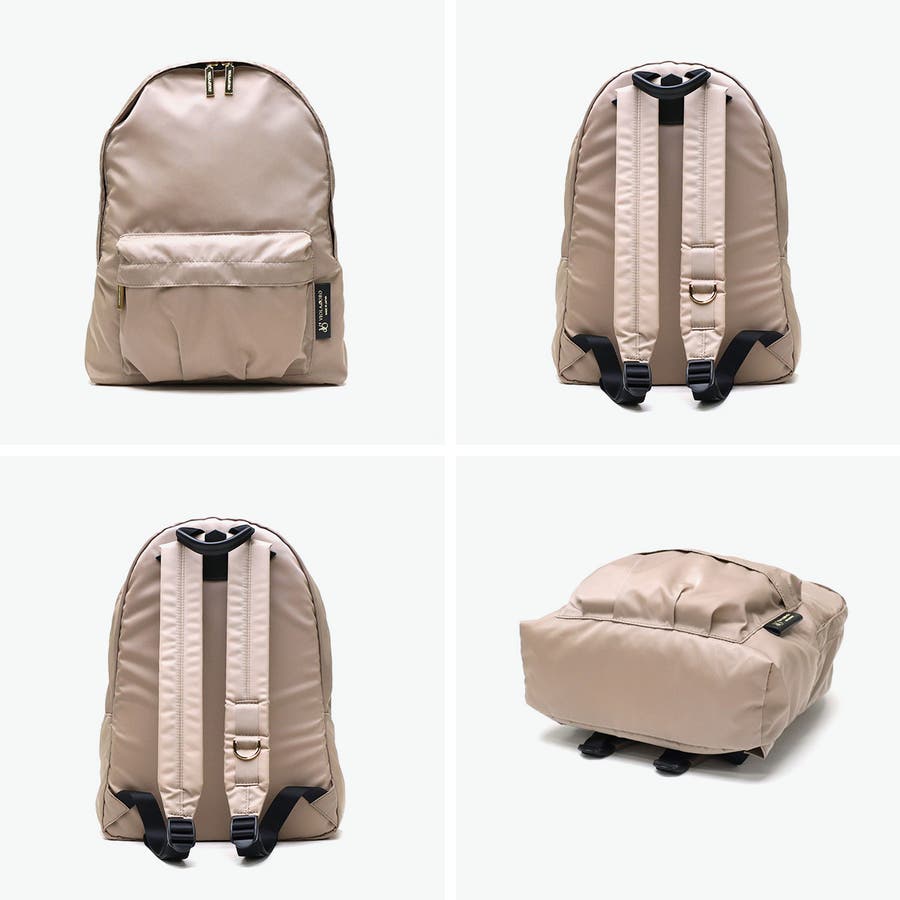 きれいめからカジュアルスタイルまで合わせやすい、ベーシックなデザインが魅力のシリーズ『GINO/ジーノ』のナイロンバックパック。上品な光沢感とゴールドの金具使いで、女性らしい印象に。弱撥水性のため、タウンユースにはもちろんレジャーシーンにもお使いいただけます。