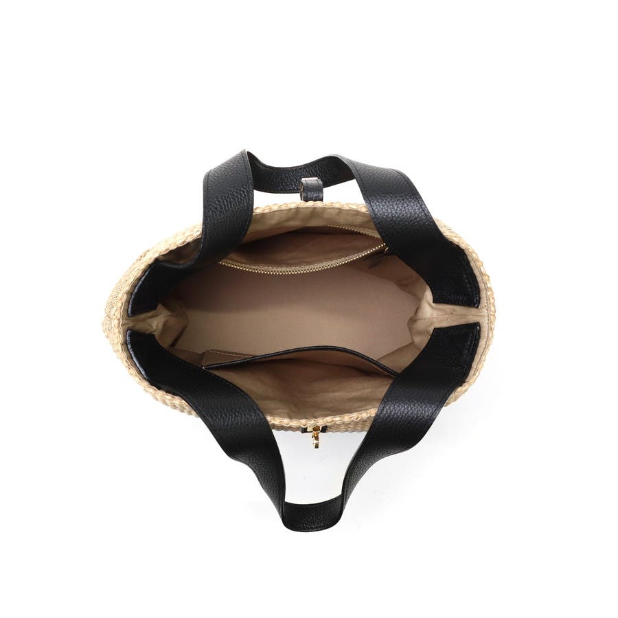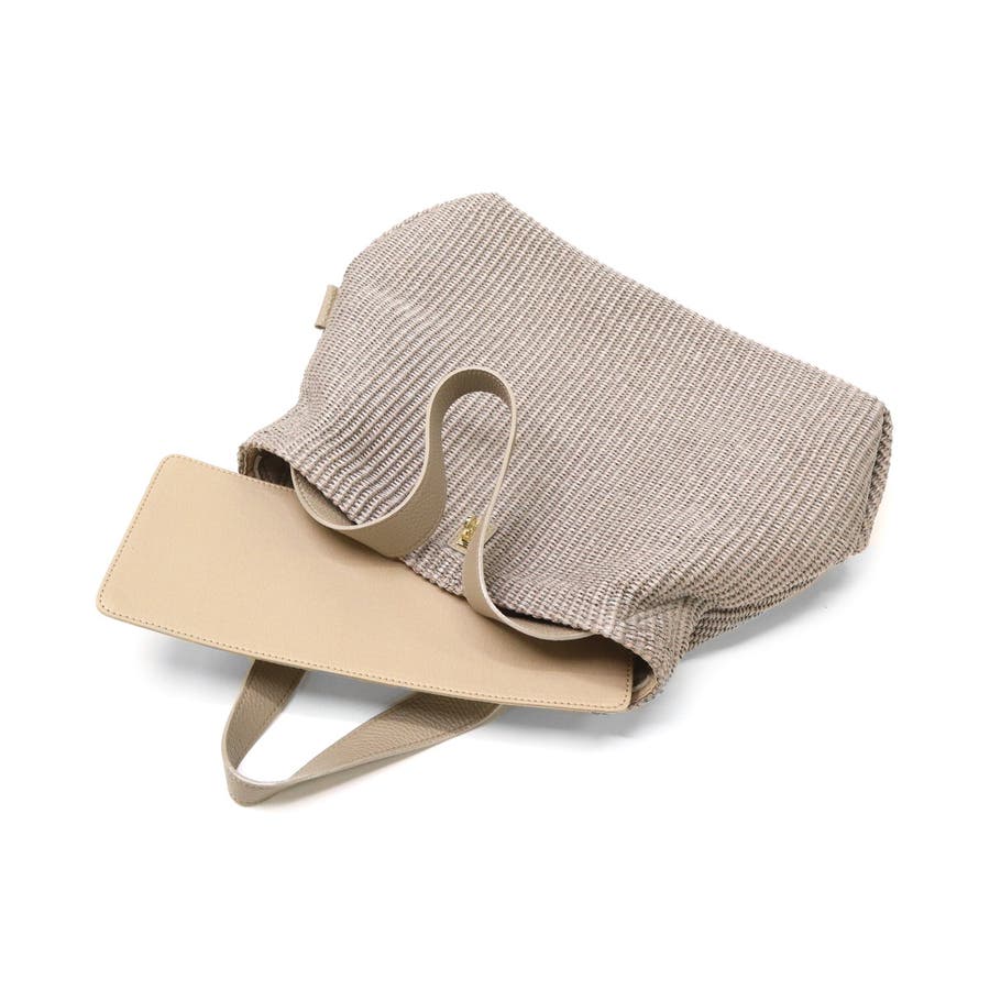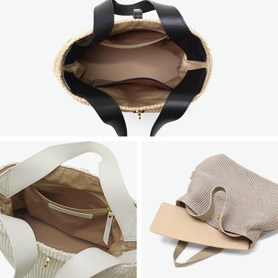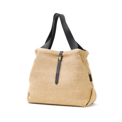 ラフィア調の爽やかで涼しげな素材感が魅力のトートバッグ。軽やかな素材にレザーを合わせることで、ラフになりすぎない上品さをプラス。程よいナチュラル感で、大人の装いにもしっくり馴染みます。滑らかで柔らかい手触りで、ワンランク上のおしゃれが楽しめます。