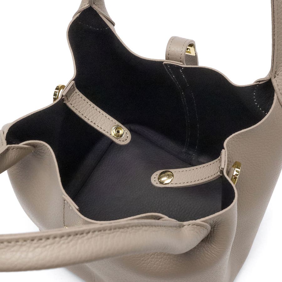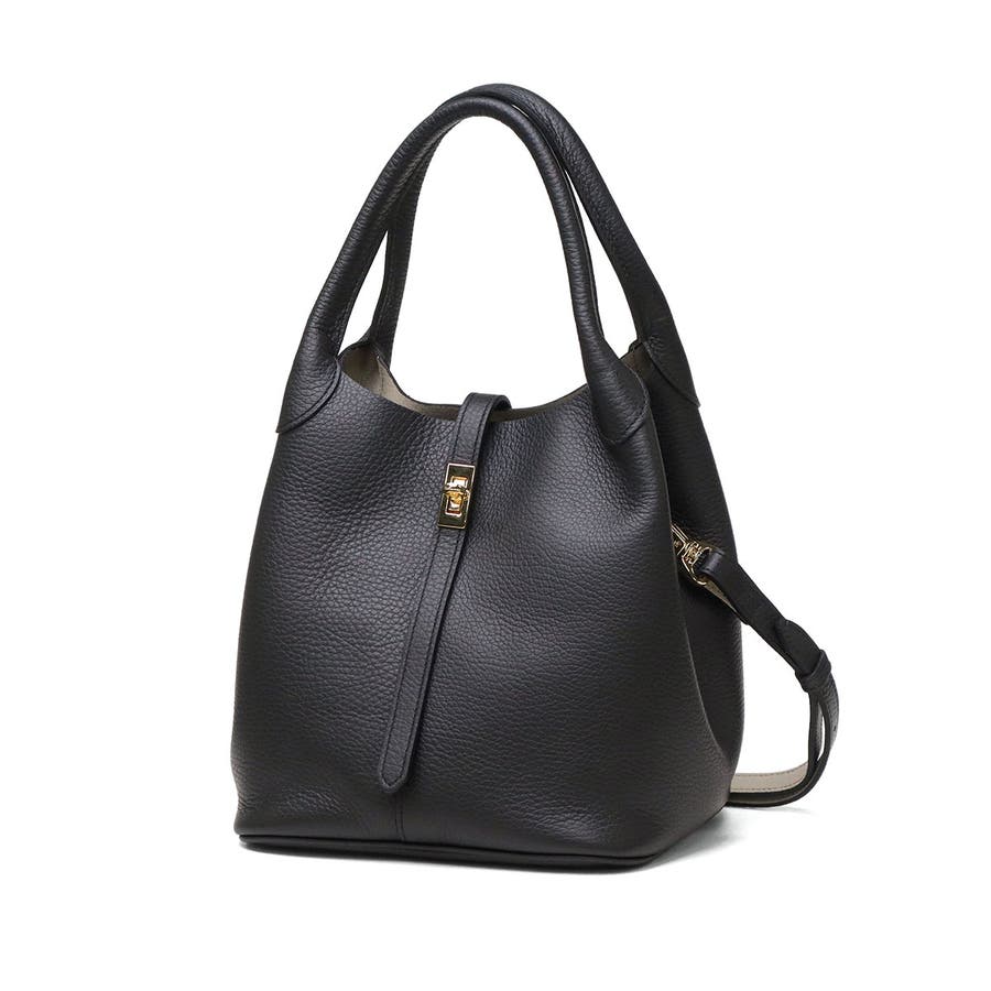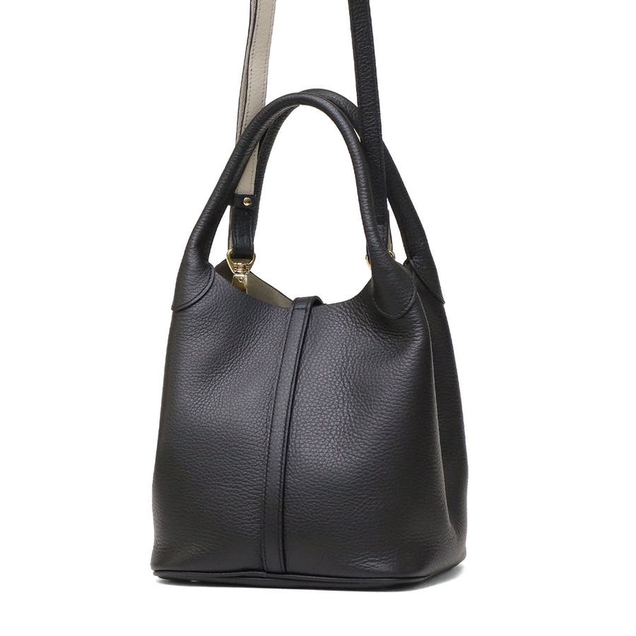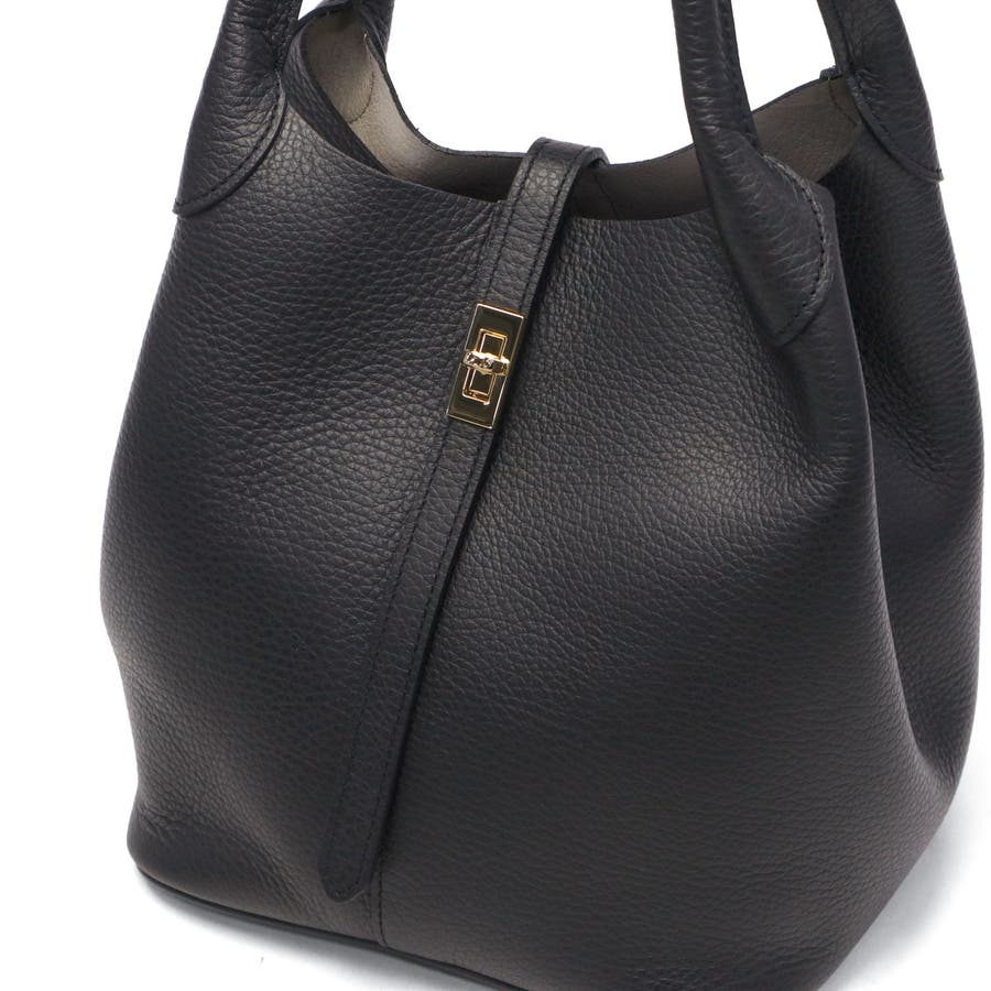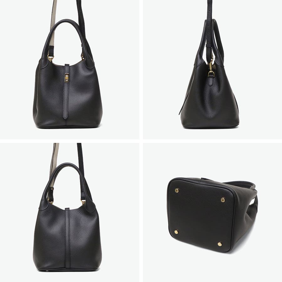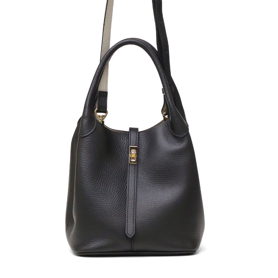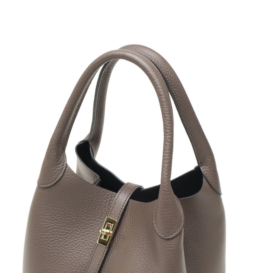 ソフトで軽やかなイタリアンWフェイスレザーを使用した、上品なベルト付きトートバッグ。傷が目立ちにくいシボ型押しで、毎日使いにも安心。コンパクトながら長財布がすっきり収まる実用的なサイズ感。2WAY仕様で通勤から休日まで幅広く活躍します。