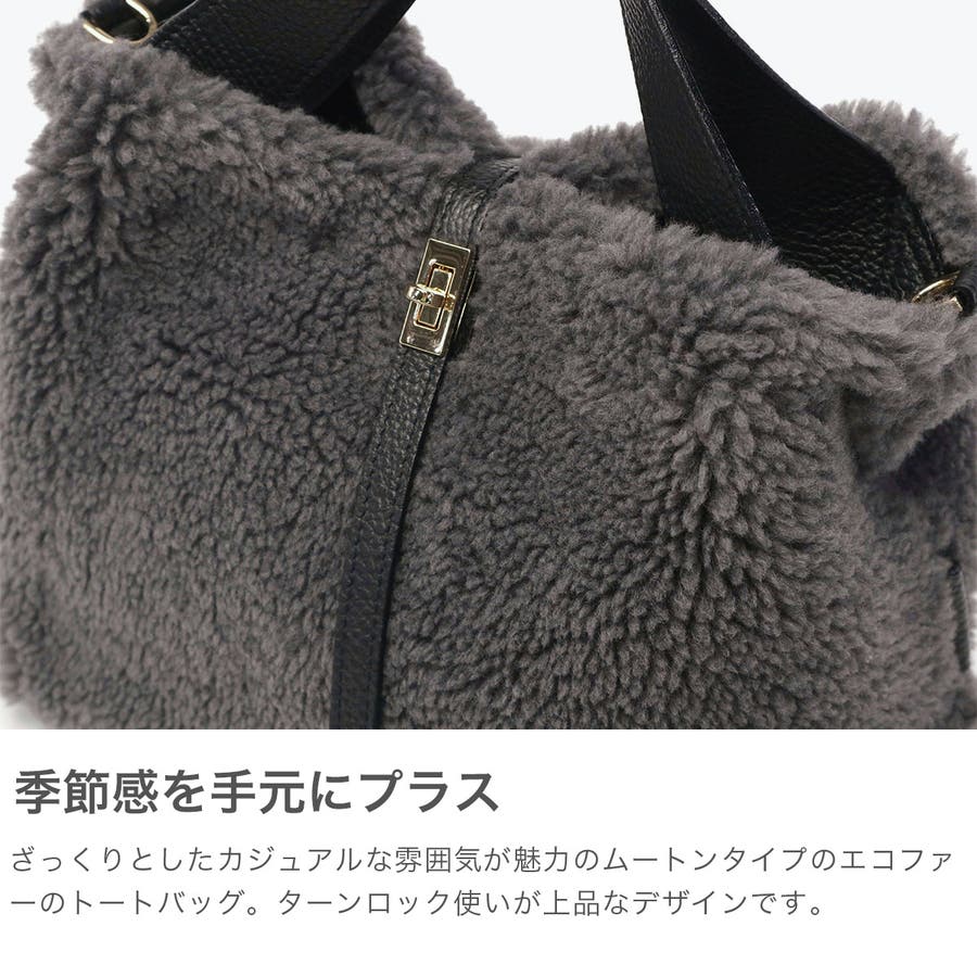 ボアが大人可愛いエコムートンを使用した「ELMO」のファーバッグ。カジュアルな雰囲気で温かみのあるボア素材を使用し、秋冬の装いに優しい華やかさを添えます。ハンドルとショルダーの2WAY仕様で、手提げにも斜めがけにもアレンジ可能です。毎日のスタイルを品よくアップデートしてくれる秋冬のマストアイテムです。