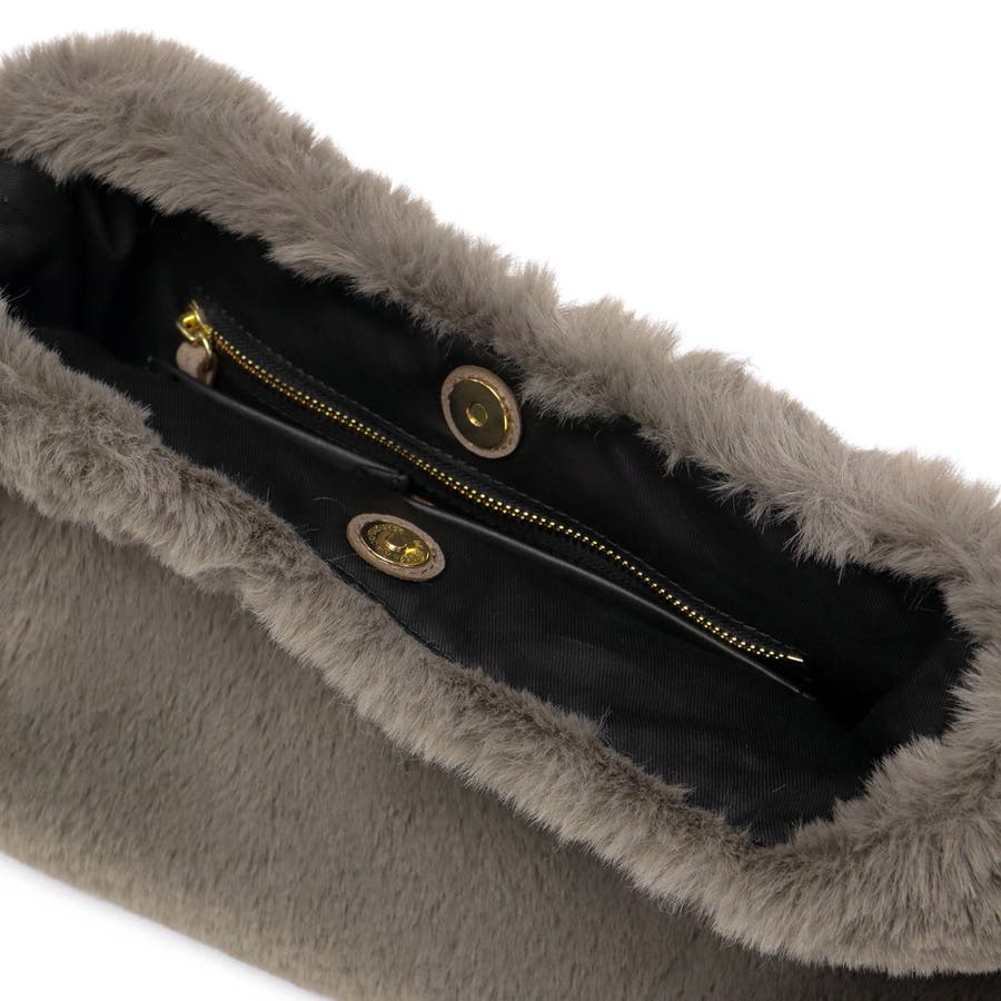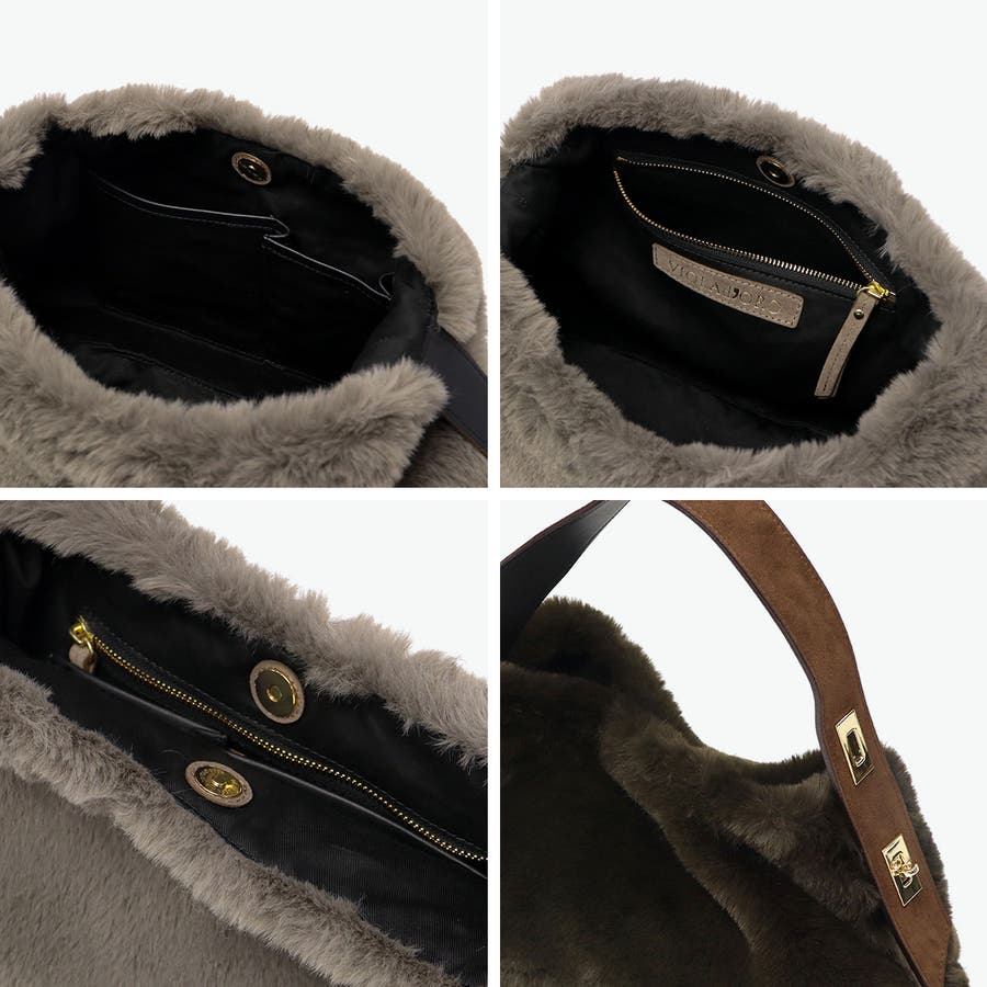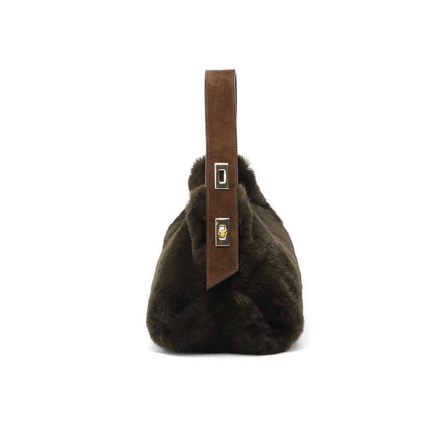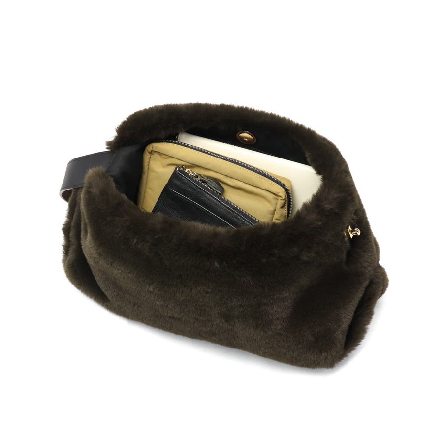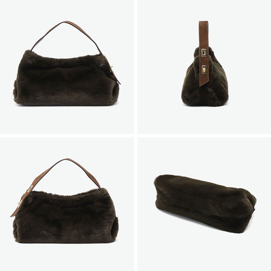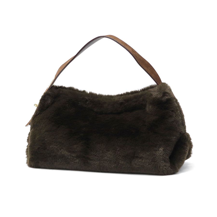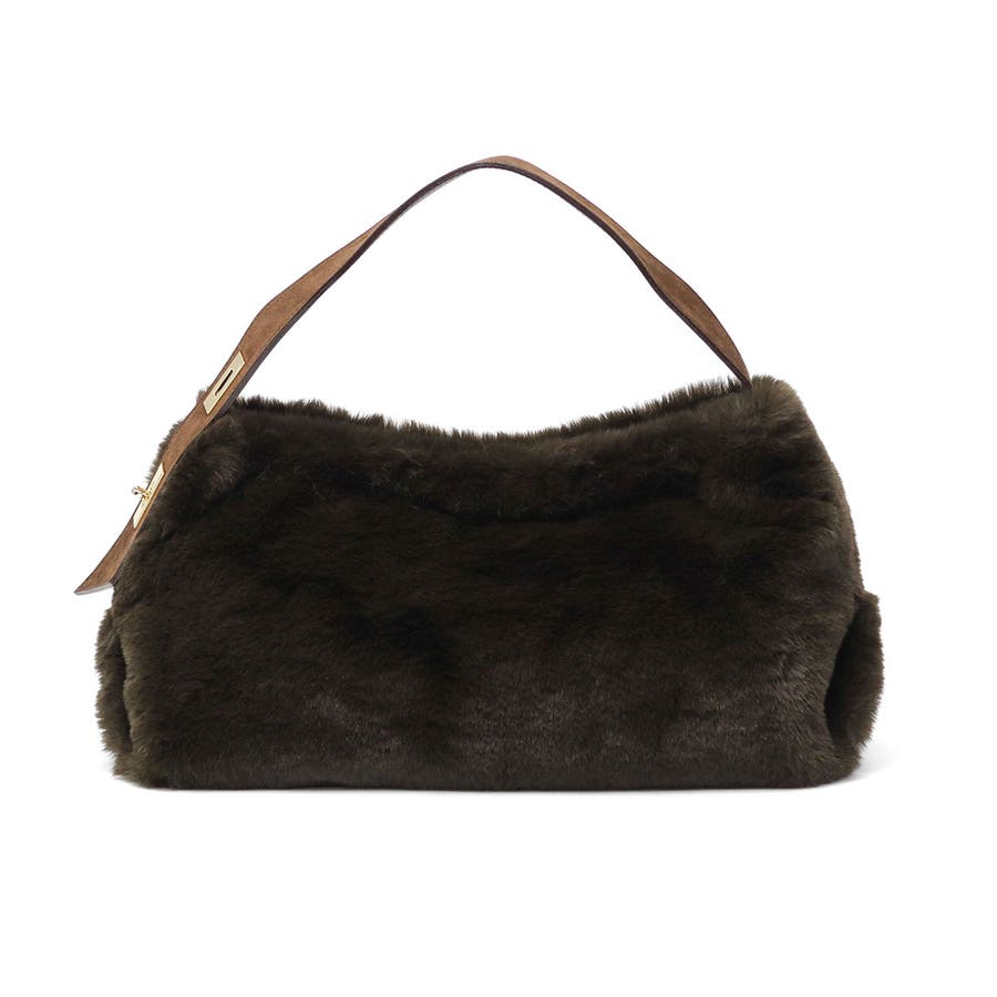 上品な光沢と柔らかな手触りが魅力の、レッキスラビットファータイプのエコファーを使用したトートバッグ。毛足が短く、程よいカジュアル感で幅広いコーデにマッチします。ターンロック付きのベルトと高級感のあるスエード使いがデザインのポイント。長財布や携帯も持ち運びにちょうどいいサイズ感で、デイリーに活躍するアイテムです。