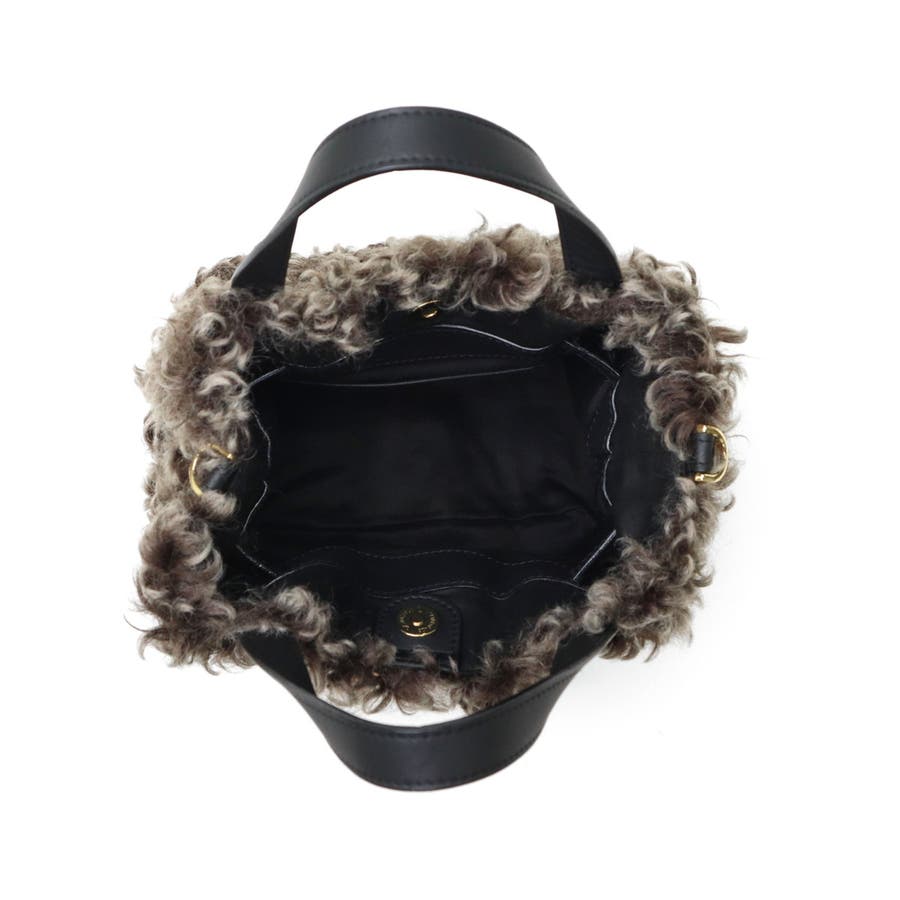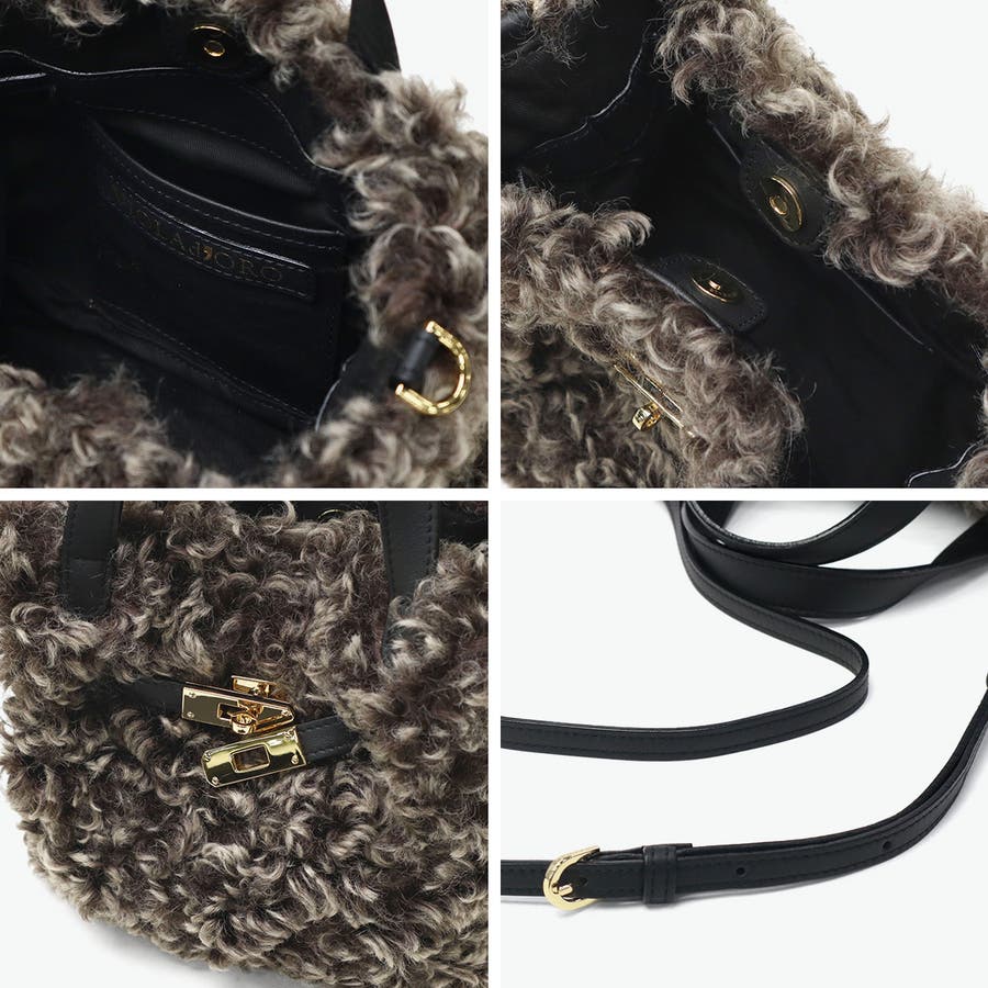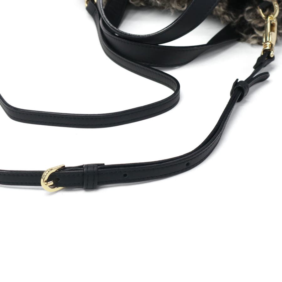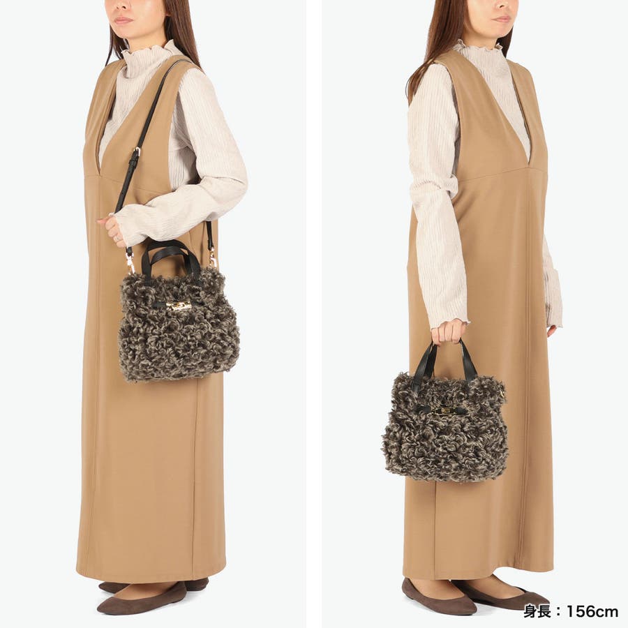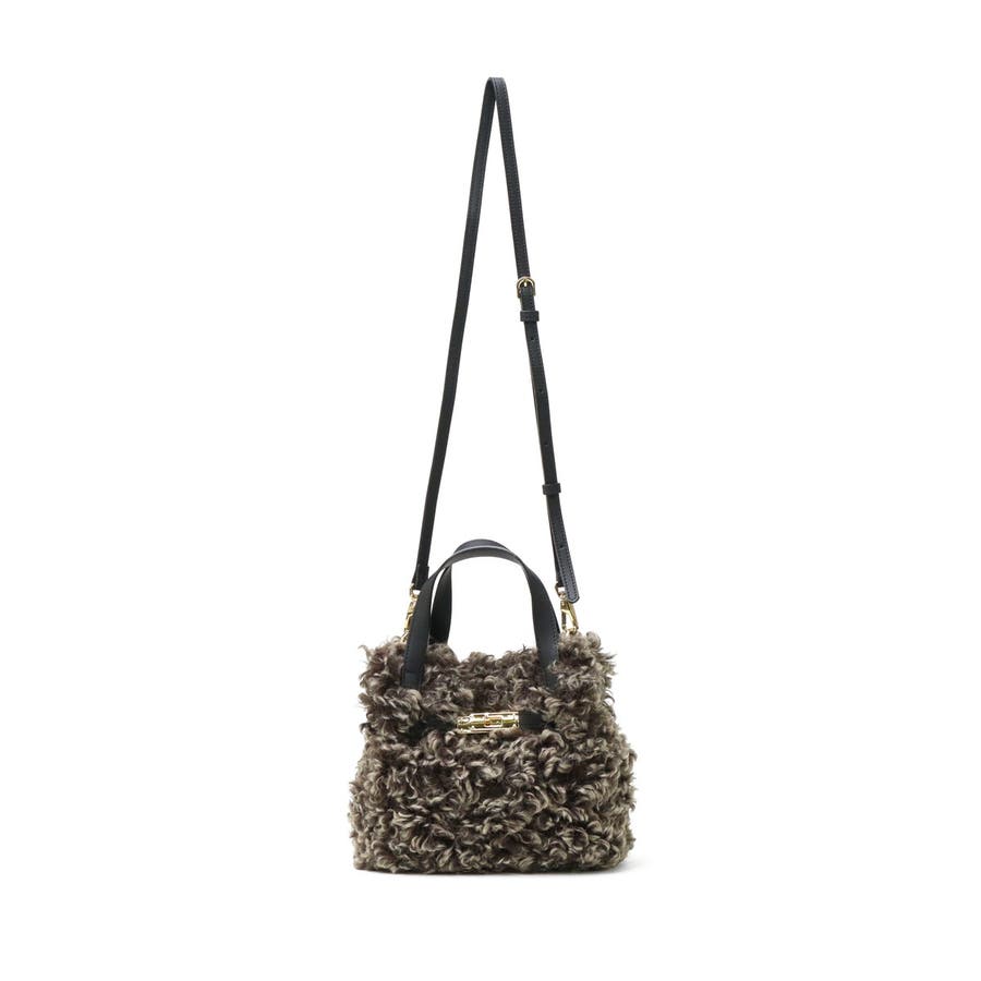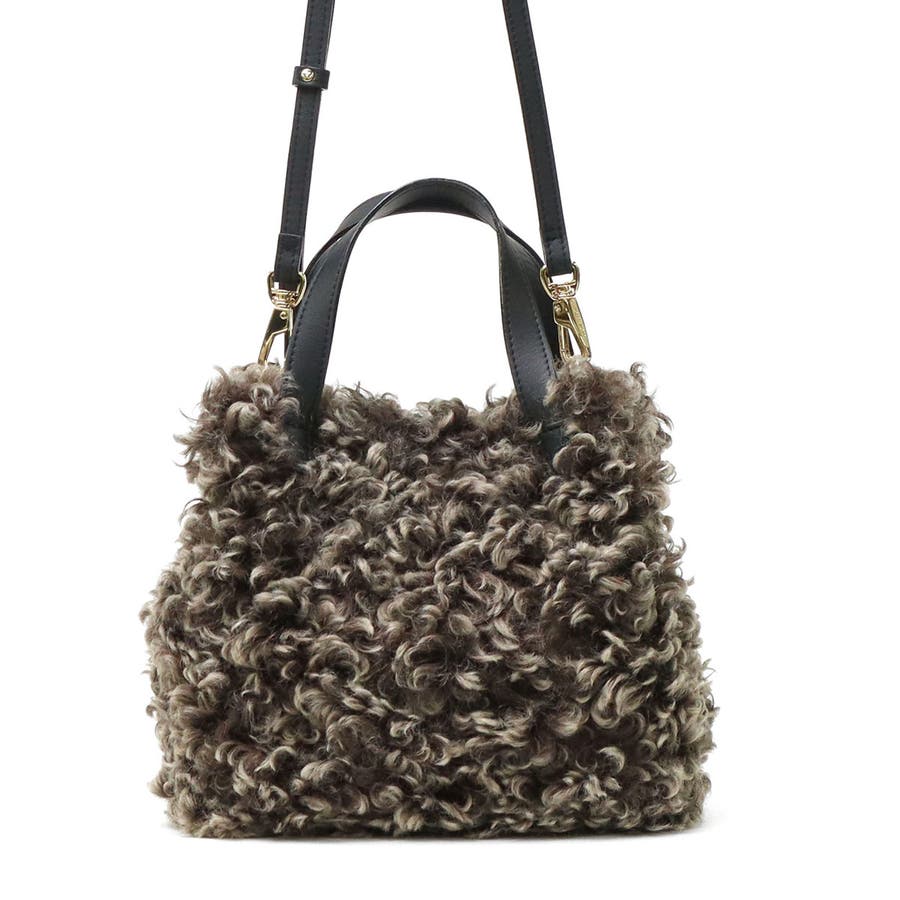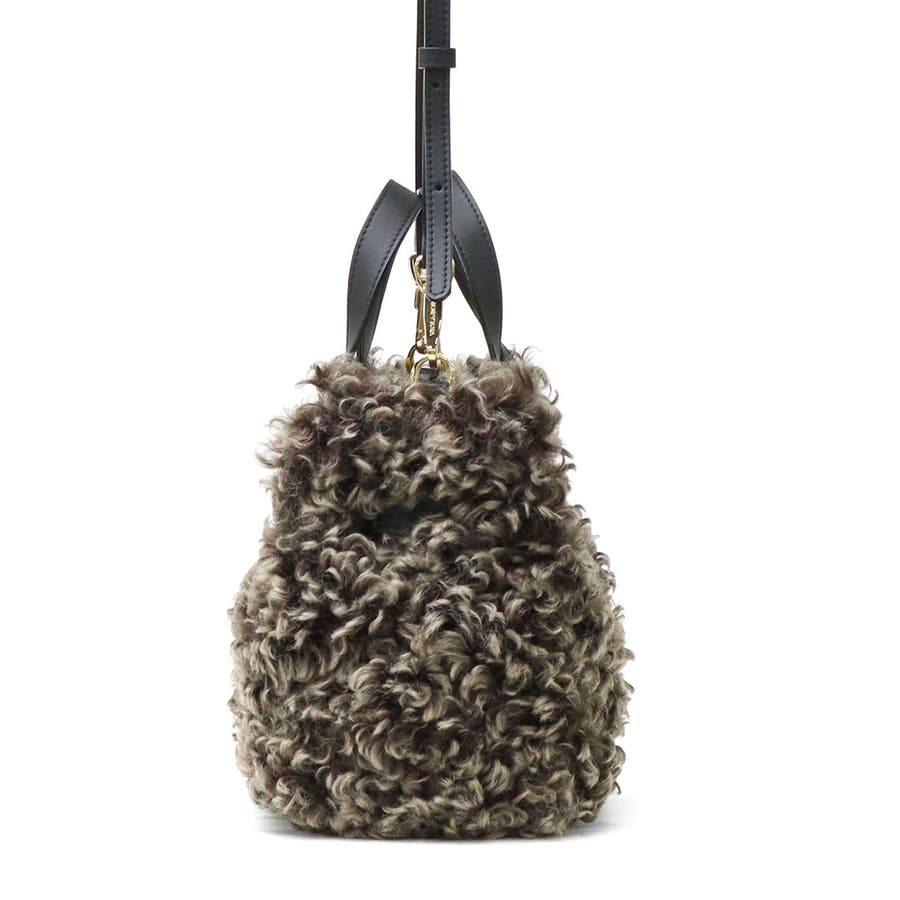 強めのカールが印象的なチャンラムタイプのエコファーを使用した2WAYバッグ。ムラ感のあるカラーが、リアルな質感と程よいカジュアルさを演出します。ベルト部分のゴールドが上品なアクセントとなり、スタイルに華やかさをプラス。ハンドバッグとしてはもちろん、ストラップを付けてショルダーにもできる万能デザインです。リッチな素材感と愛らしさを兼ね備え、秋冬のコーデに映えるアイテムです。