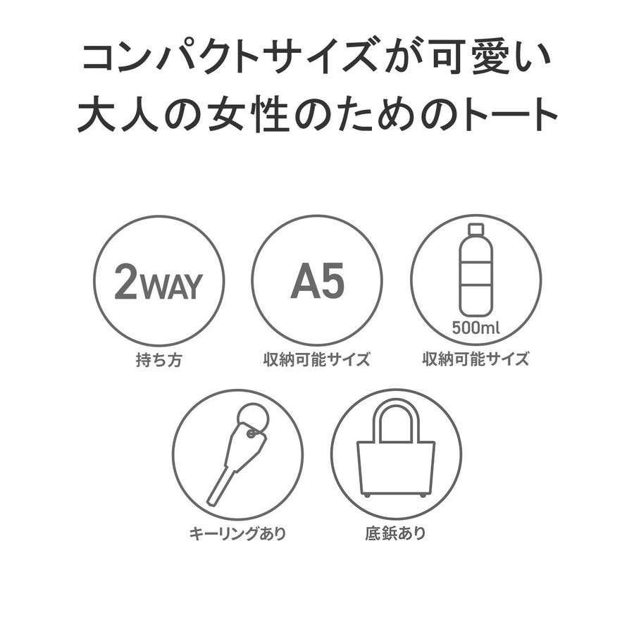 きちんと感が大人可愛い、ハンドバッグ派のためのお仕事バッグシリーズ『Totten/トッテン』のスクエアトート。コンパクトなミニサイズの本体は、ショルダーベルトを付属した2WAY仕様になっています。メインルームはA5サイズに対応しており、手帳や貴重品などの収納に最適。500mlのペットボトルも横に倒してしまえる実用的なサイズ感なので、見た目はきちんとしながらも、中はざくざくしまえて気兼ねなく使えるのが嬉しいポイント。持つだけでコーデがキマり、カジュアルからきれいめまで幅広いスタイリングにおすすめです。
