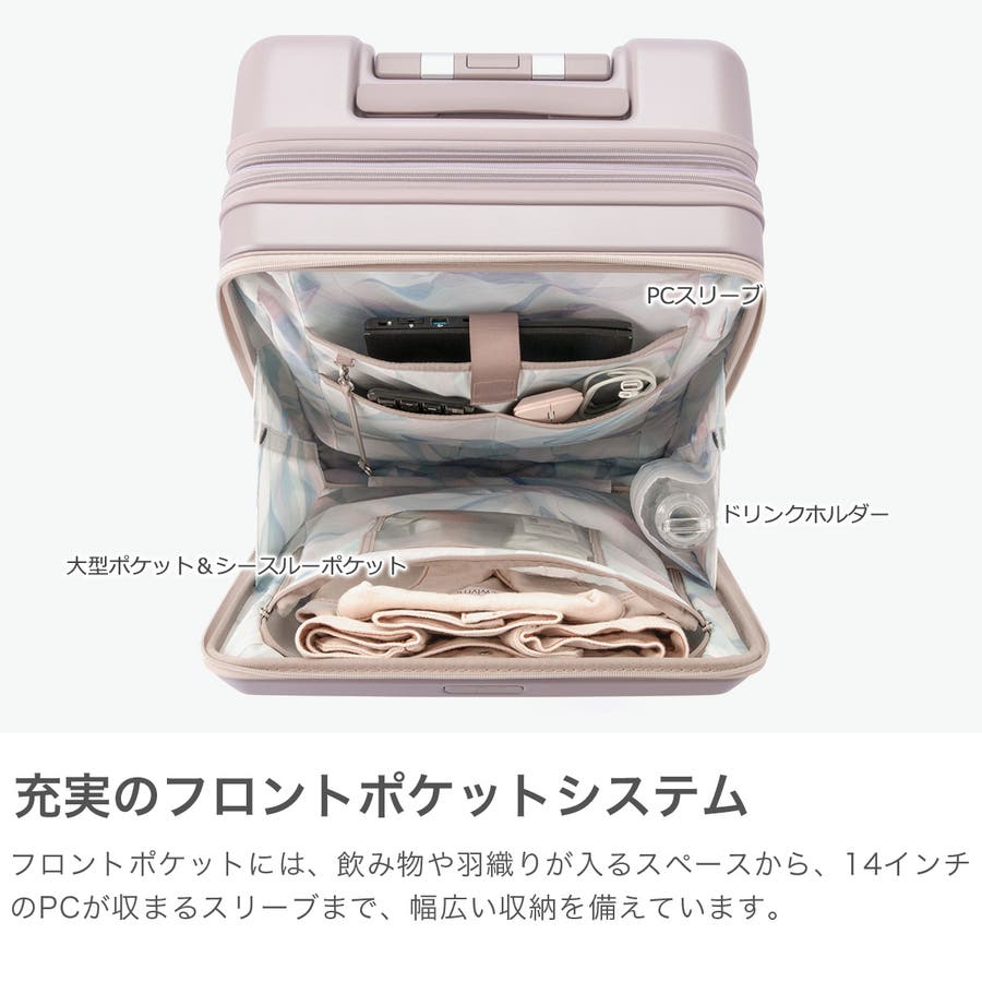メーカーの女性社員が考えた!本当にほしい「はたらく女子のスーツケース」。スーツケースブランド『HaNT』の開発チームと一緒にこだわり抜いた逸品。充実の機能性に加え、パール入りの繊細なカラーに素敵な内装グラフィックで、女性のお悩みに応えるデザインに仕上げました。ハイスペックでベストバイなアイテムとなっています。