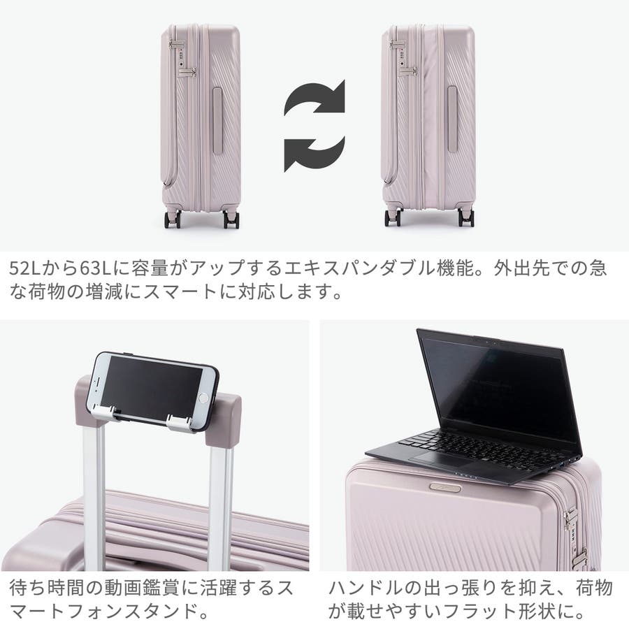 ・エキスパンダブル機能付きの製品は、マチ拡張時の3辺の和が機内持ち込みサイズ、預け入れ無料サイズを超える場合がございます。また、航空会社や飛行機の機種などによって規定が異なりますので、予めご確認の上お求めください。