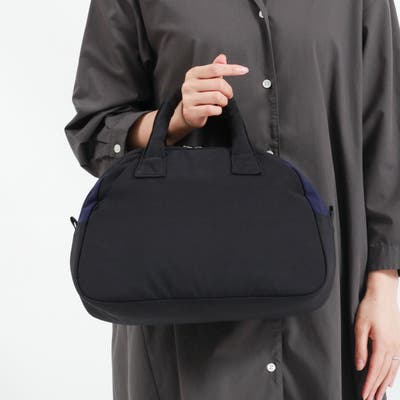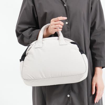 WE-ME独自のスライドオープン機構を備えたボストンバッグ。大きく開くことができるので収納しやすく、中が見やすいのが最大の特徴となっています。こちらはちょっとしたお出掛けに便利なSサイズです。本体は小ぶりなサイズ感でありながらしっかりマチを設けているのでアイテムをサクサクしまえます。サイズ感の異なるポケットが複数設けられているため、バッグの中で散らばりがちな荷物もすっきりと収納する事が可能。ポケットはクッション性があるため、スマホなどの収納も安心して行えます。メインの素材はナイロンのジャージー編みに塩縮加工を施し、しっかりと目を詰めた手触りのよいオリジナル素材を採用しています。織物とは違う優しいタッチ感が魅力的です。