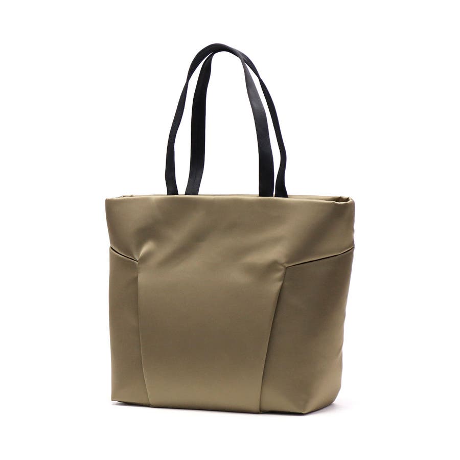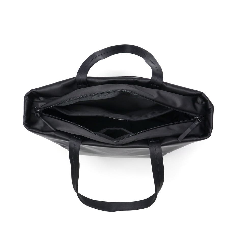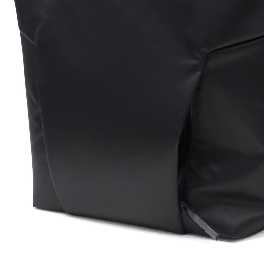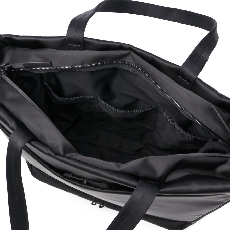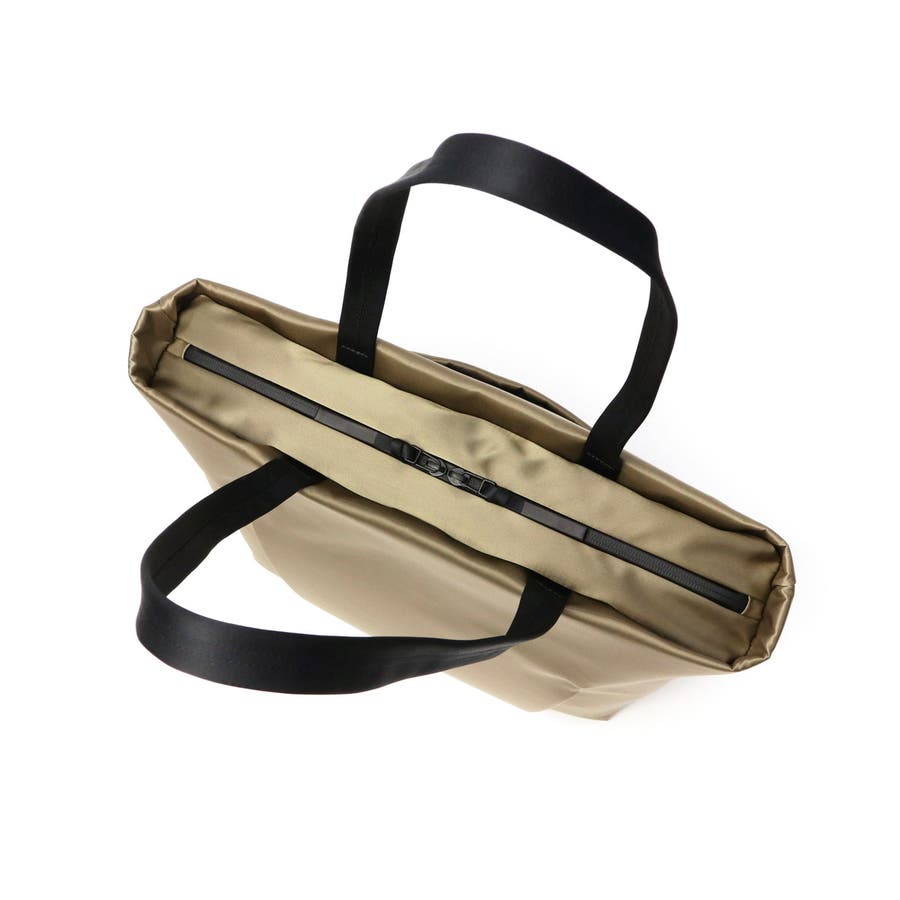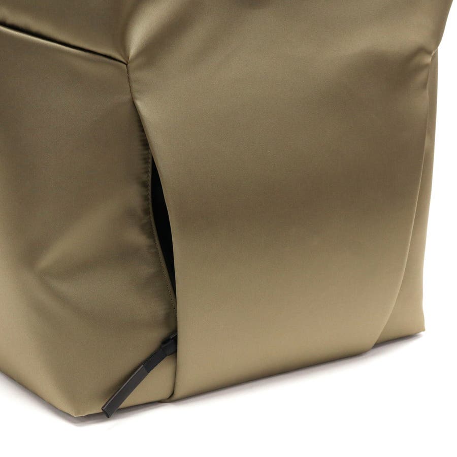 FOLDの独特な裁断パーツを逆さまにしたソリッドな見た目のトートバッグ。メインルームにはA4サイズがゆったり収まり、PC収納に加え小物が管理しやすいポケットを豊富に備えています。正面スリット部にはそれぞれ独立した隠しファスナーポケット、背面には下部ファスナーを開けるとキャリー取り付け可能なホック付きポケットを装備。引き裂きや摩耗の強度に優れた生地を採用し、繊細で上品な光沢を持ちながらも耐久性に優れたタフな仕上がりになっています。