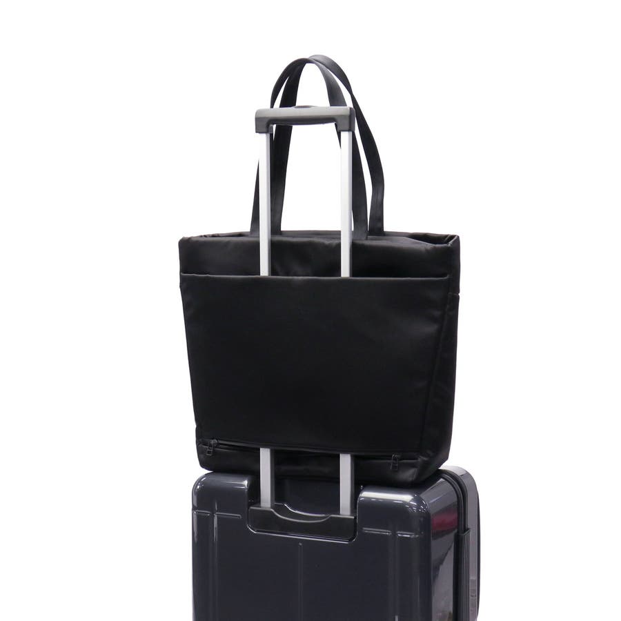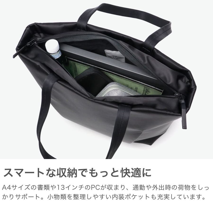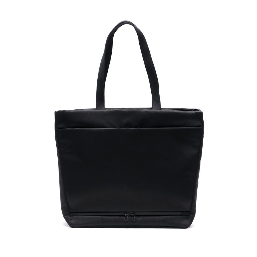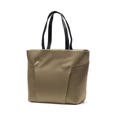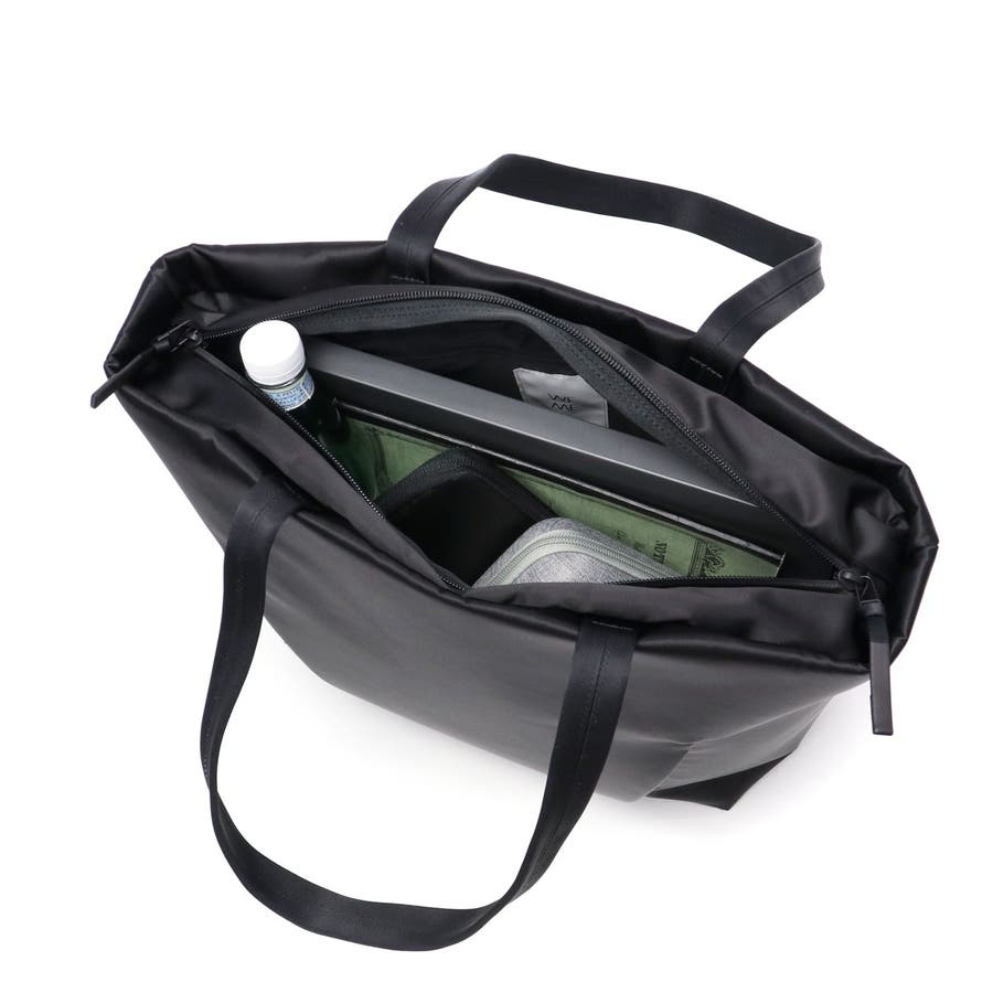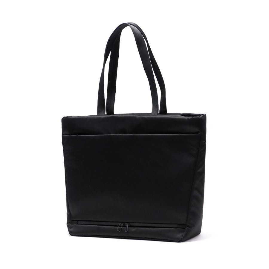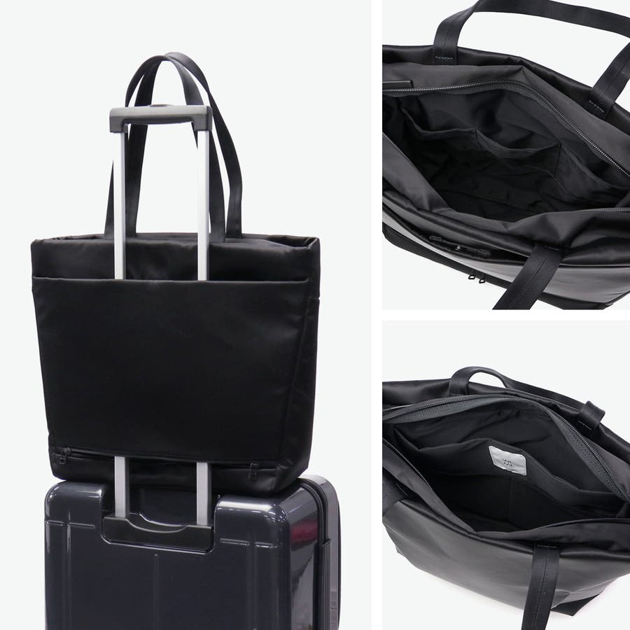 FOLDの独特な裁断パーツを逆さまにしたソリッドな見た目のトートバッグ。メインルームにはA4サイズがゆったり収まり、PC収納に加え小物が管理しやすいポケットを豊富に備えています。正面スリット部にはそれぞれ独立した隠しファスナーポケット、背面には下部ファスナーを開けるとキャリー取り付け可能なホック付きポケットを装備。引き裂きや摩耗の強度に優れた生地を採用し、繊細で上品な光沢を持ちながらも耐久性に優れたタフな仕上がりになっています。