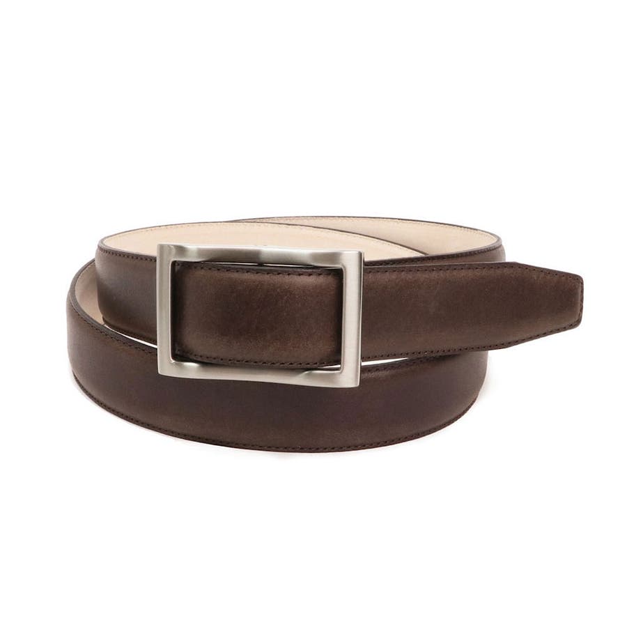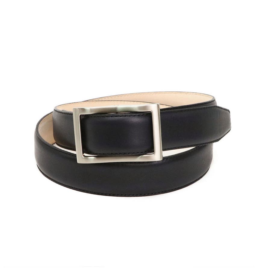 革の特徴と使い易さを考えて開発されたフリコベルトは、革の摩擦抵抗を利用して止まる仕組みの、無段階調整が可能なベルトです。フリーサイズでご利用いただける上、微調整が簡単にできるのが特徴となっています。こちらはバックルを止めるねじを装着する穴が2つ開いているタイプで、お身体に合わせてバックルをずらし、より高いフィット感でお使いいただけます。