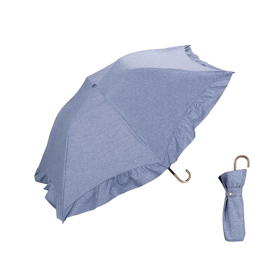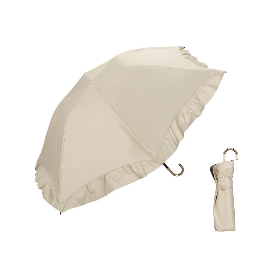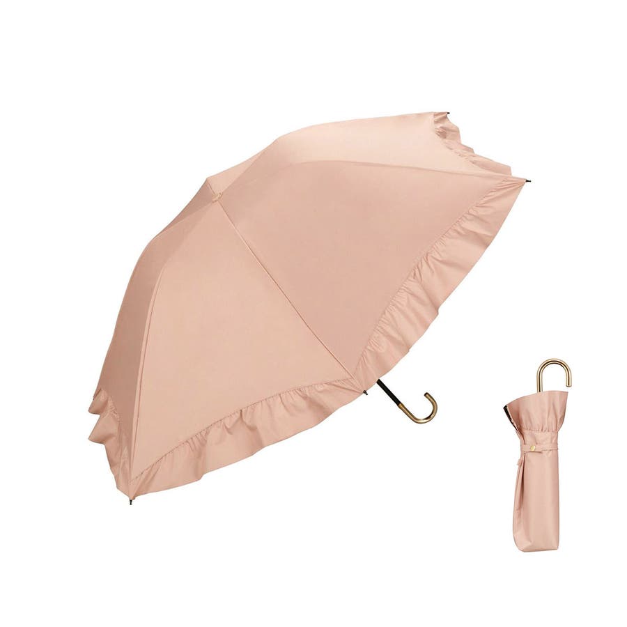華やかなフリルを裾全体にあしらった、かわいらしい折りたたみ傘。軽くて錆びにくいアルミゴールド性の華奢なハンドルが、さらに高級感を演出します。通常の傘と比べて親骨が55cmと大きく、鳥かごのようなカーブが特徴的。まるで包み込まれているような安心感があります。