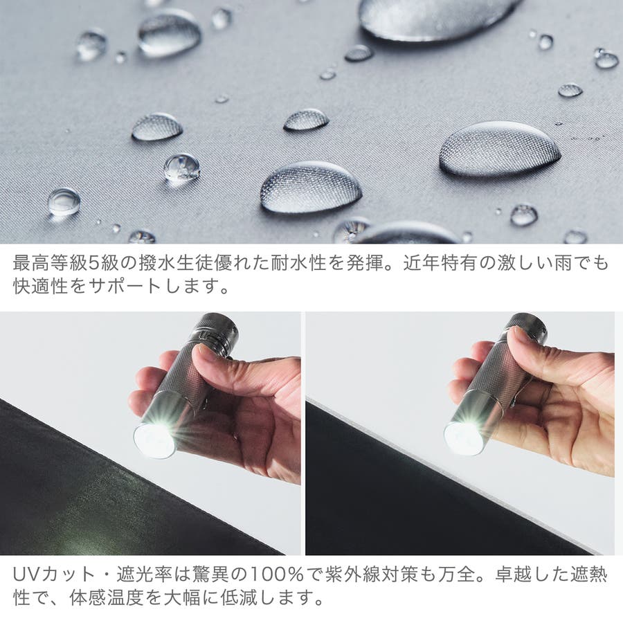 「大人の男性でも自然と日傘が使えるように」と考え、生み出された晴雨兼用傘『IZA/イーザ』。こちらは特殊な骨構造で実現した、高強度・耐風タイプの折り畳み傘です。コンパクトながら、開いた時の直径は約93cmと男性でもしっかりカバーしてくれるサイズ感を実現。UVカット率100%、遮光率100%で遮熱効果があり、暑い日の熱中症対策や突然の豪雨にも対応します。