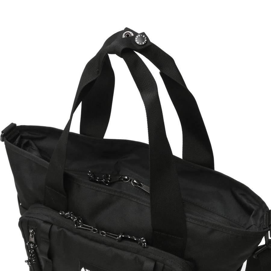 着脱可能なショルダーストラップが付属した、2WAY仕様のトートバッグ。本体は、A4ファイルがゆったり収まる使い勝手の良いサイズ感に仕上がっています。また、フロントポケットが充実しているため、小物も綺麗に管理可能。その他、タオルや傘を掛けられる便利なハンガーベルトや、本体下部のリフレクターなど移動時に役立つ細部の仕様もポイントです。