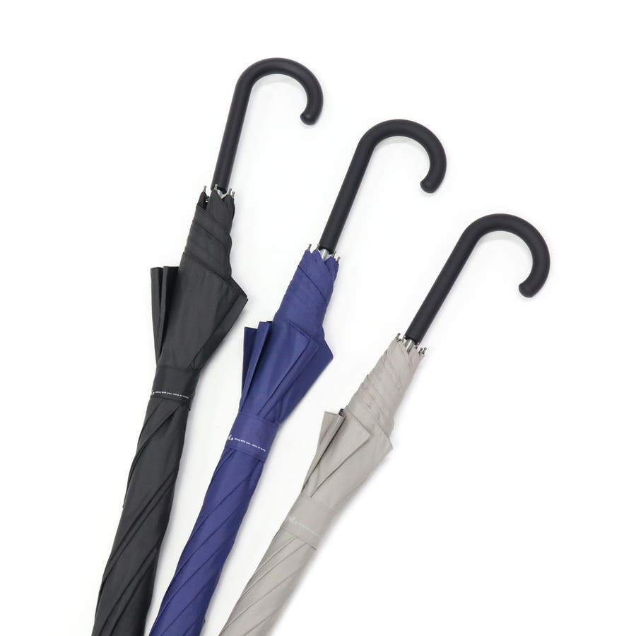 大きめ65cmなのに、スリム&軽量設計の耐風傘。特殊ダボがサスペンションのようにしなり、風を受けてもひっくり返りにくい構造です。ワンタッチで開くジャンプ式に、傘をまとめやすいように太めのバンド付き。UVカット率90%以上なので、雨の日も晴れの日も頼れる1本です。