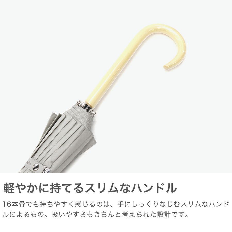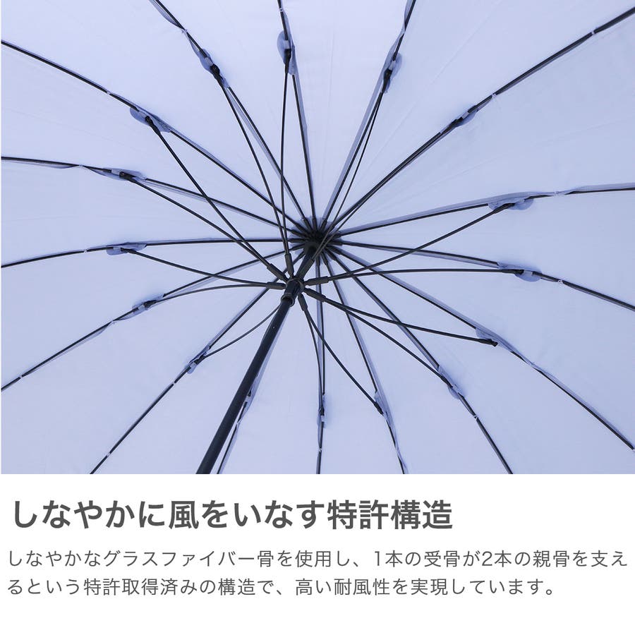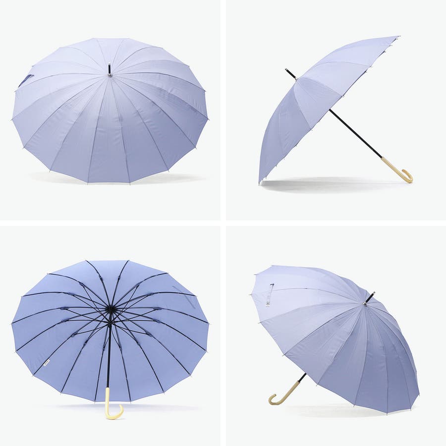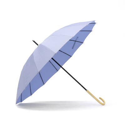 雨の日も、晴れの日も日々の暮らしの中で、頼れるアイテムを揃えた『umbulatio』の長傘「16K花びらき」。しなやかなグラスファイバー骨を使用し、1本の受骨が2本の親骨を支えることで高い耐風性を実現!!(意匠・特許取得済)。16本骨のシルエットが美しい、まるで花が咲くような可憐なデザインとなっています。