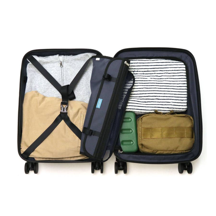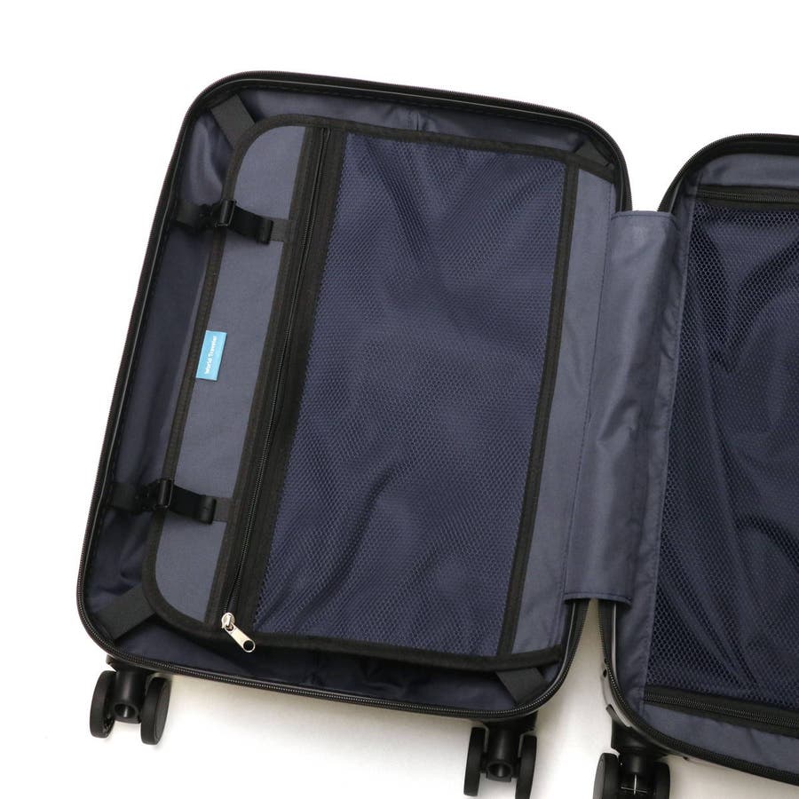 縦リブにカーボン柄を施したシャープなデザインが特徴の『ボトムベイ』シリーズ。本体は1~2泊分の荷物が収まるコンパクトなサイズ感で、旅行や出張などに持ち運びやすいアイテムに仕上がっています。静音双輪キャスターを採用し、静かで安定した走行を実現。また背面にはワンタッチで操作できるキャスターストッパーを装備し、電車や坂道での不意な移動を防止します。その他、TSAロック、耐衝撃性に優れたポリカーボネートをボディに使用するなど、実用的な機能を抑えた設計が魅力です。