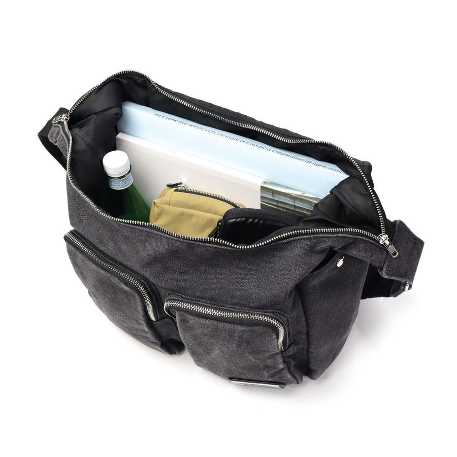 加工感が目を惹くメッセンジャーバッグ。軽量ながら収納力抜群で、ダブルポケットが使いやすさもプラス。ロゴとメタルネームがアクセントになった、Y2Kテイスト香るストリートデザインが魅力です。
