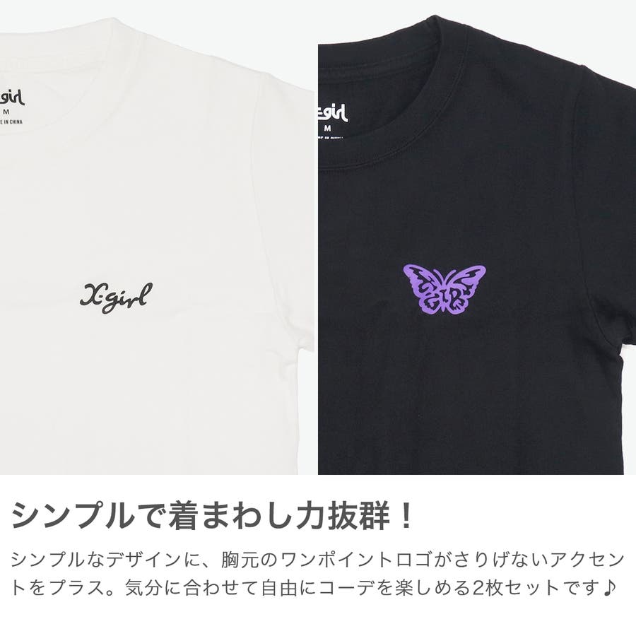 ベーシックなクルーネックの半袖Tシャツの2点セットです。X-girlロゴとバタフライのワンポイントのシンプルなデザイン。コンパクトなちびTシルエットで、トレンド感のあるスタイリングが楽しめます。ストリートはもちろん、ダンスシーンやインナー使いなど、幅広いコーディネートに活躍するアイテムです。