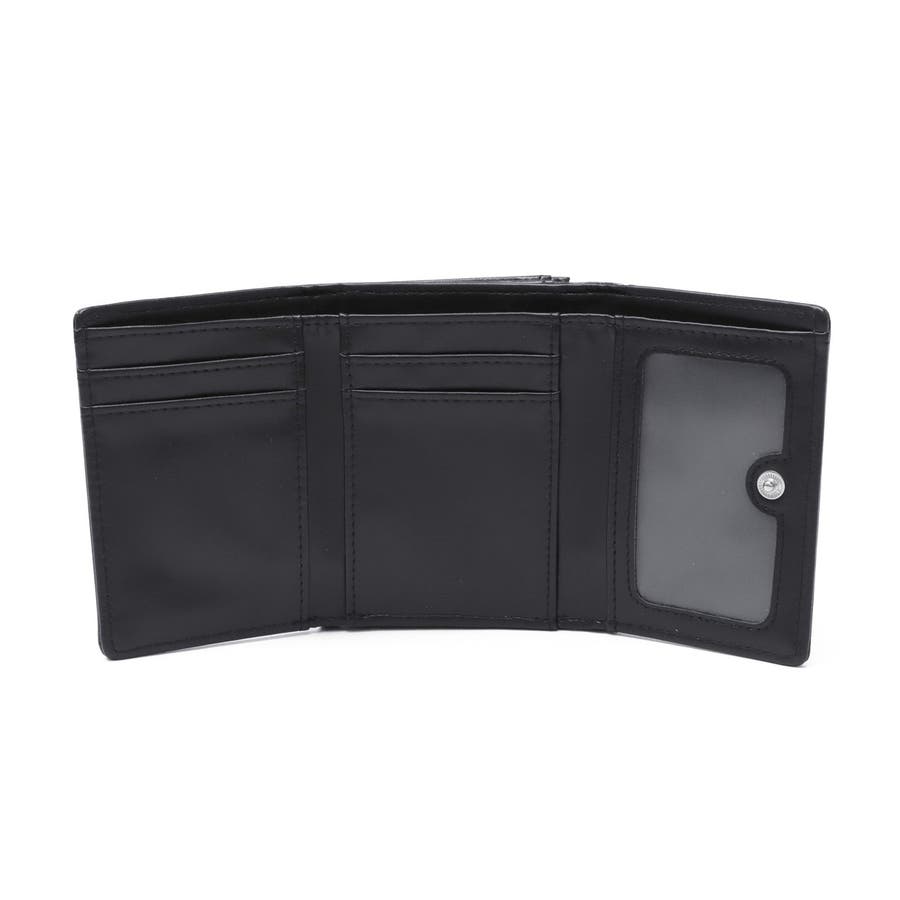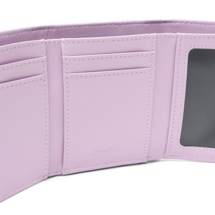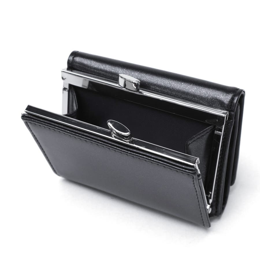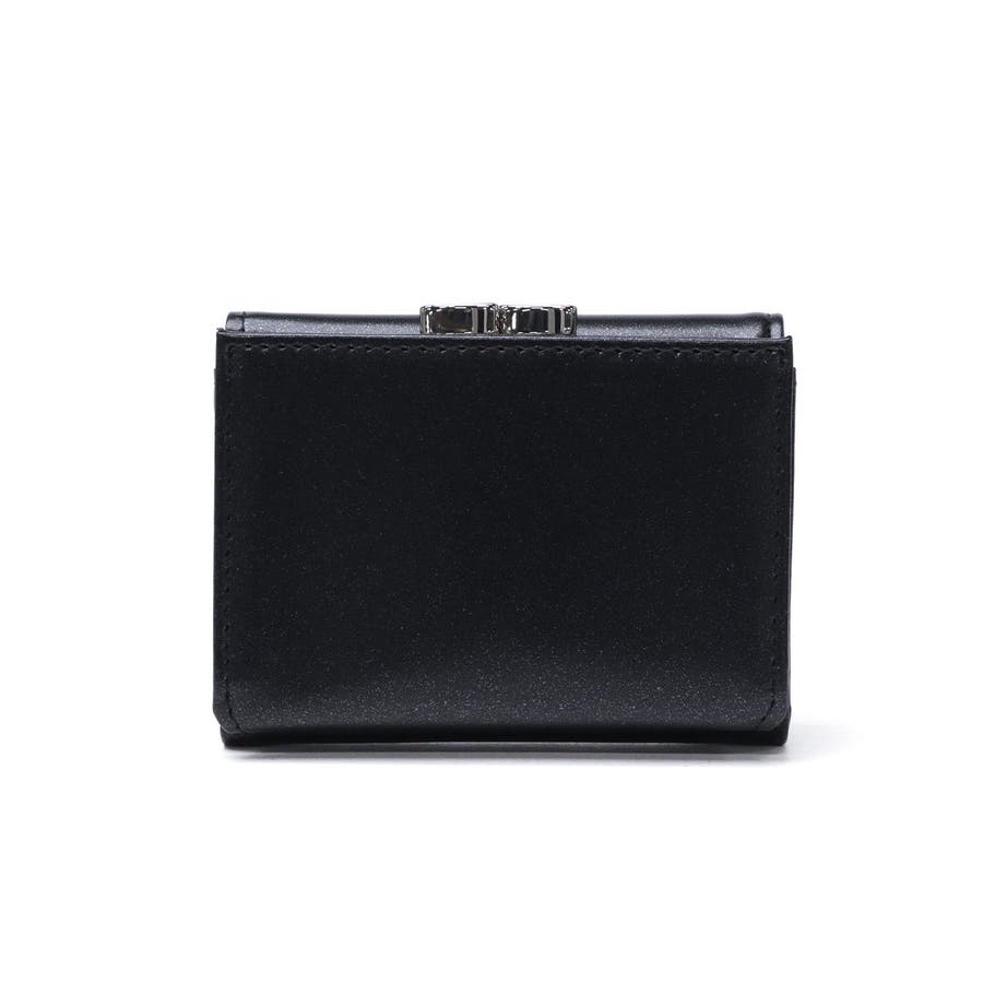 メタリックなブランドロゴが目を引く三つ折りタイプのミニウォレット。細かなラメが輝くフェイクレザー素材で、上品な印象に仕上げています。コンパクトサイズでありながら、がま口で開けやすいコインポケットや充実したカードポケットなどの機能性も◎。新生活やプレゼントにもおすすめなアイテムです。