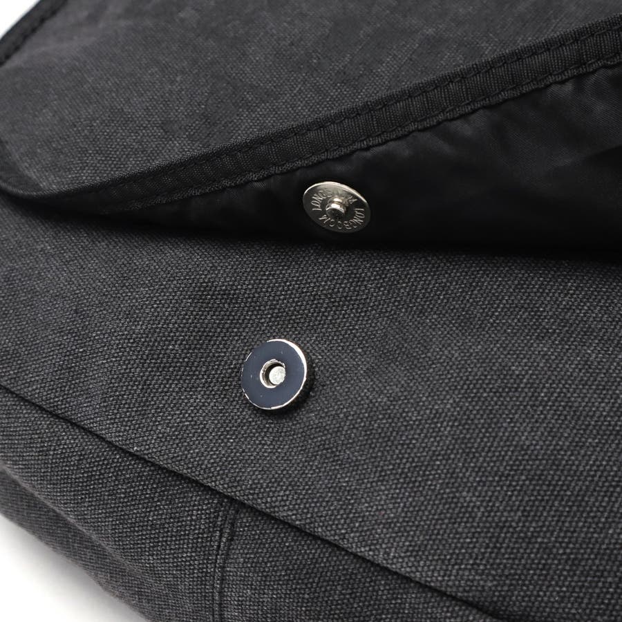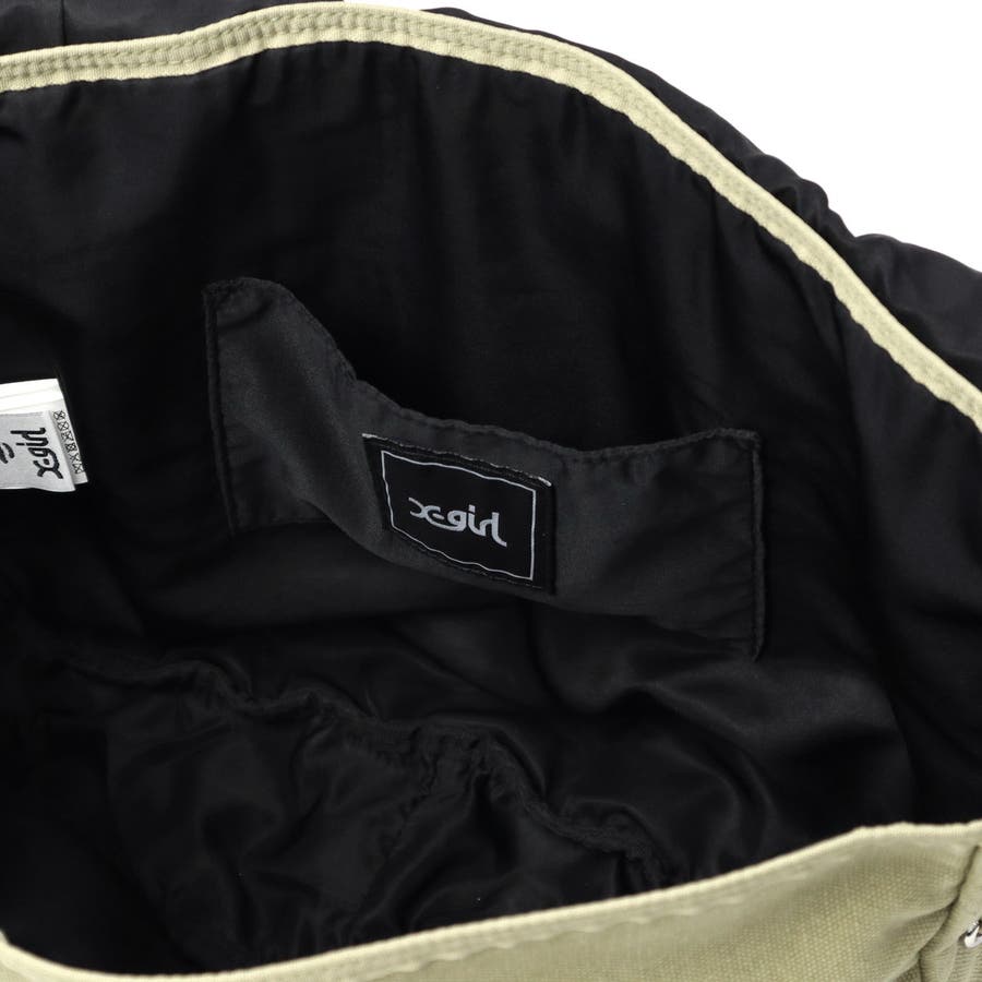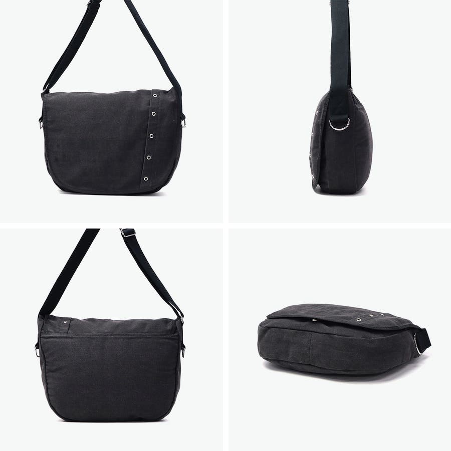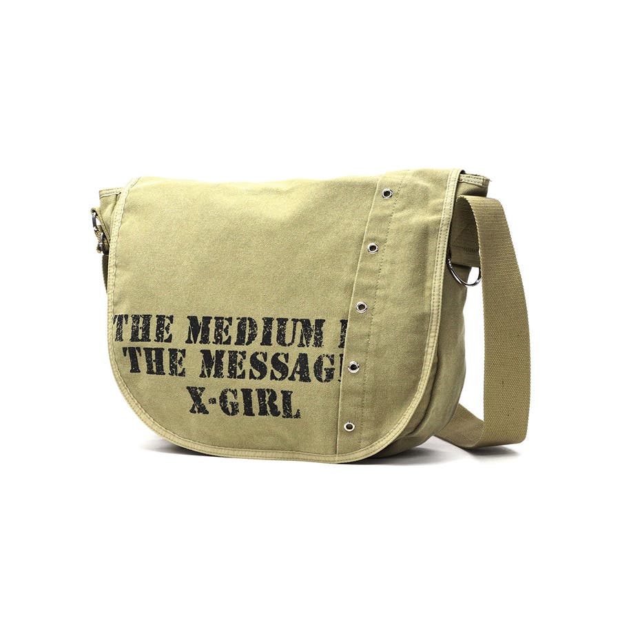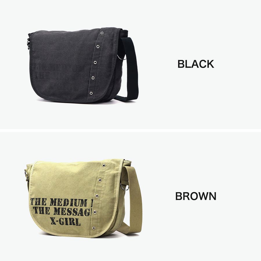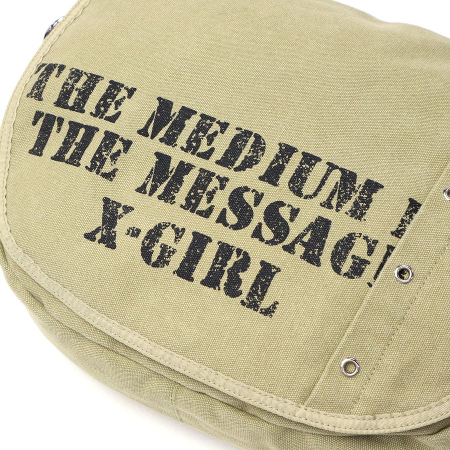 かすれたプリントを施した、ダスティーな印象のショルダーバッグ。ハトメの打ち付けや加工感の風合いが魅力で、ストリートスタイルのアクセントになるアイテムです。大きめサイズで荷物もしっかりと収納できるので、日常からおでかけまで幅広く活躍します。