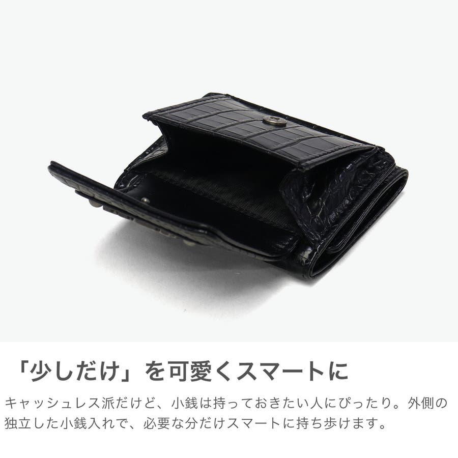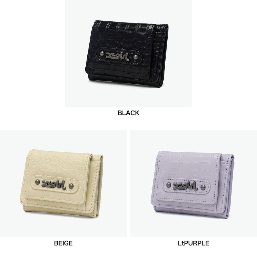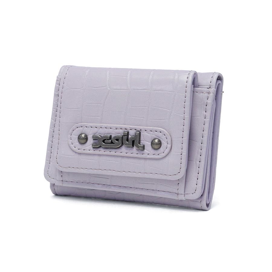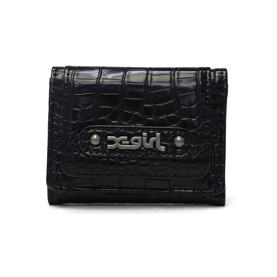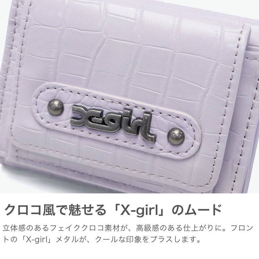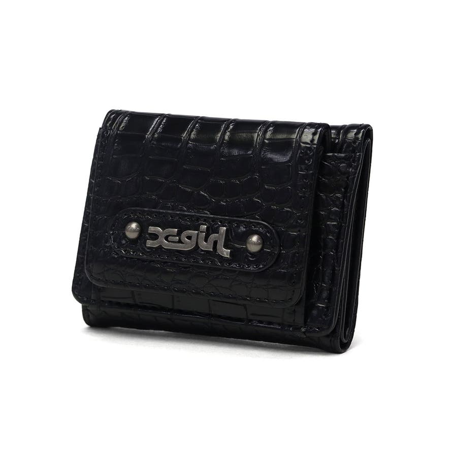 「X-girl」のロゴメタルネームと高級感漂うフェイククロコ素材が特徴の三つ折り財布。人気のミニバッグにも収納しやすい、持ち歩きに便利なコンパクトサイズ。コンパクトながらも札入れや小銭入れが完備され、使いやすいデザイン。自分用にはもちろん、プレゼントにもぴったりなアイテムです。