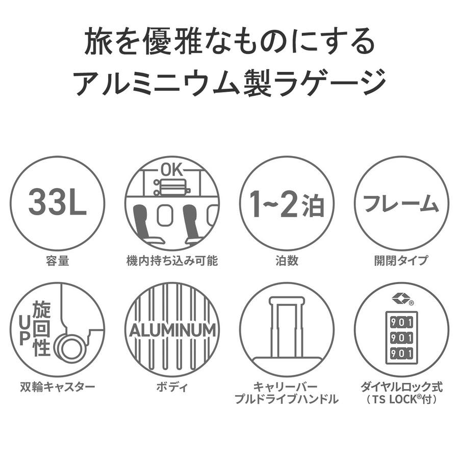 1946年に誕生した伝統的なダブルリブデザインを最も美しく表現するアルミニウム製ラゲージ。キャスター、ハンドルのデザインを一新したアルミ製スーツケースの伝統と革新の新シリーズのスーツケースです。1~2泊程度の旅行や出張に便利な容量33Lで、機内持ち込み可能なモデルとなっております。