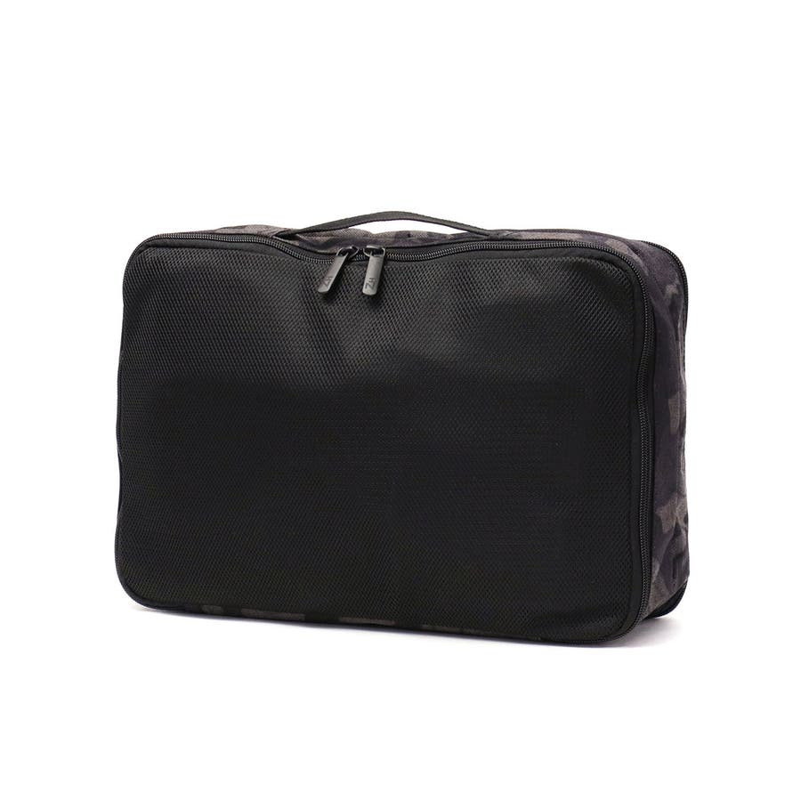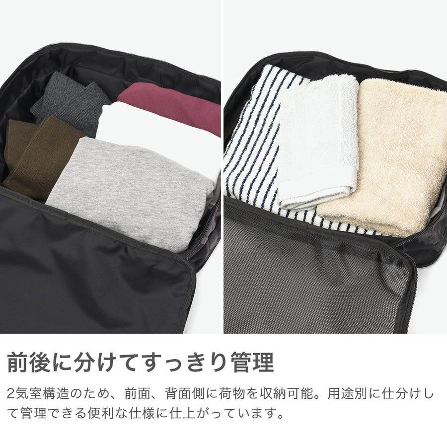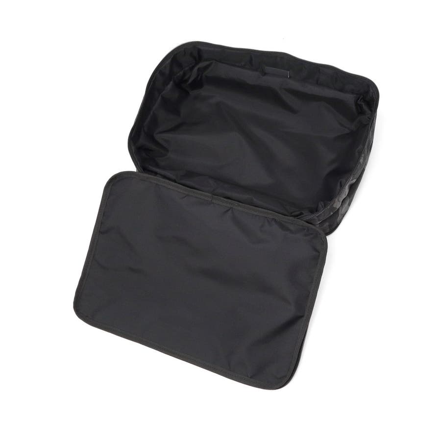耐久性のあるコーデュラナイロン生地を使用したMサイズパッキングポーチ。短期旅行や荷物が多い方にぴったりなサイズ感で、トップについたハンドルが、旅行中の移動や浴場での使用にも便利。衣類を未使用と使用済みで分けて収納可能な2気室構造も魅力的なポイントです。旅行時のパッキングアイテムとして、同シリーズで揃えてお使いいただくことも可能となっています。