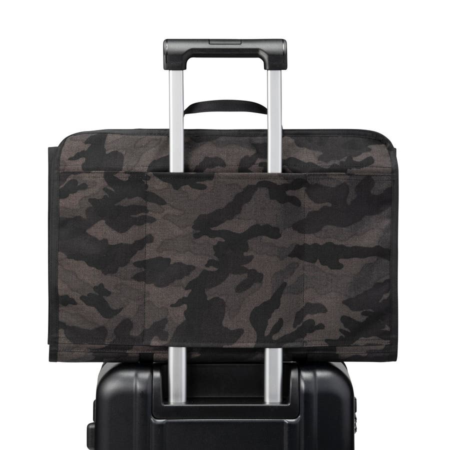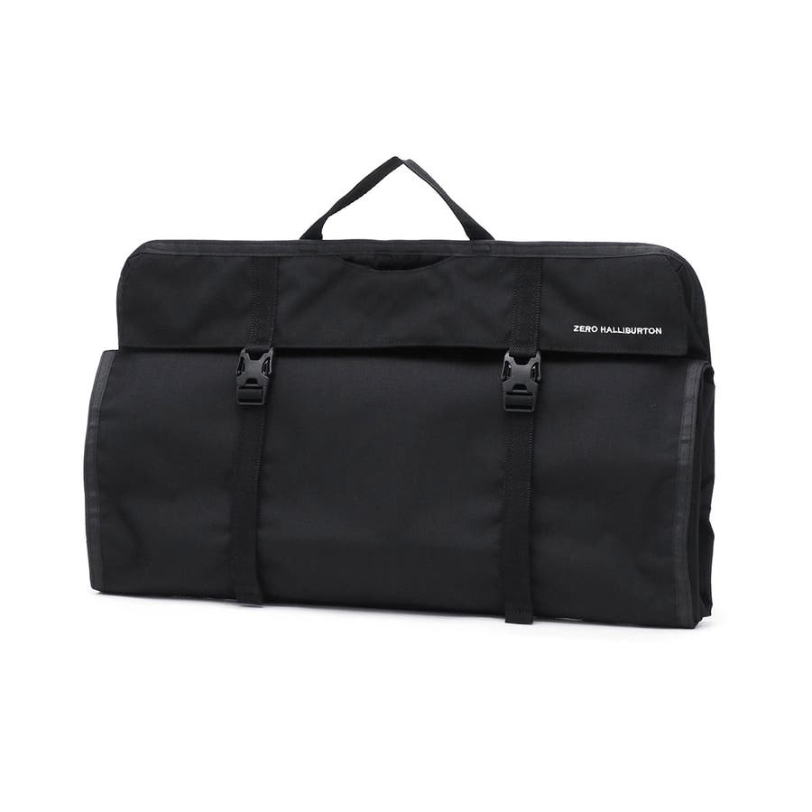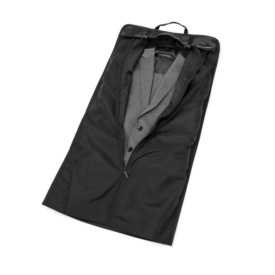 耐久性のあるコーデュラナイロン生地を使用したガーメントケース。ベルトでスーツケースのハンドルに固定できるため、移動中の安定性も確保してくれます。泊りがけの出張や冠婚葬祭など、大切なスーツや衣類をきれいに持ち運びたい時に便利なアイテムです。