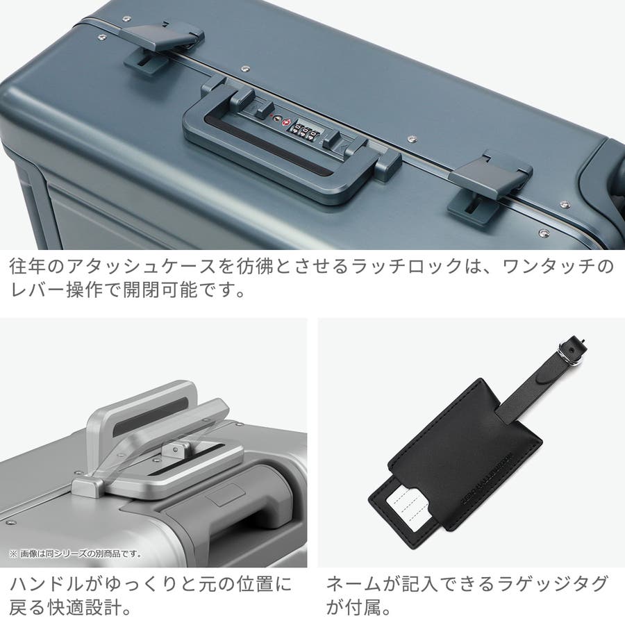6000番系アルミ合金を採用し、伝統と革新を融合した『Heritage Line』。独自のプレス加工技術により、厚さわずか1mmの薄型ボディを実現し、強靭性と軽量性を両立しています。こちらは、座席数100席以上の機内持ち込みに対応した34L容量モデル。コーナーガードのないシームレスなデザインと、ブランドの象徴のダブルリブが目を引く、唯一無二のアルミラゲージに仕上がっています。