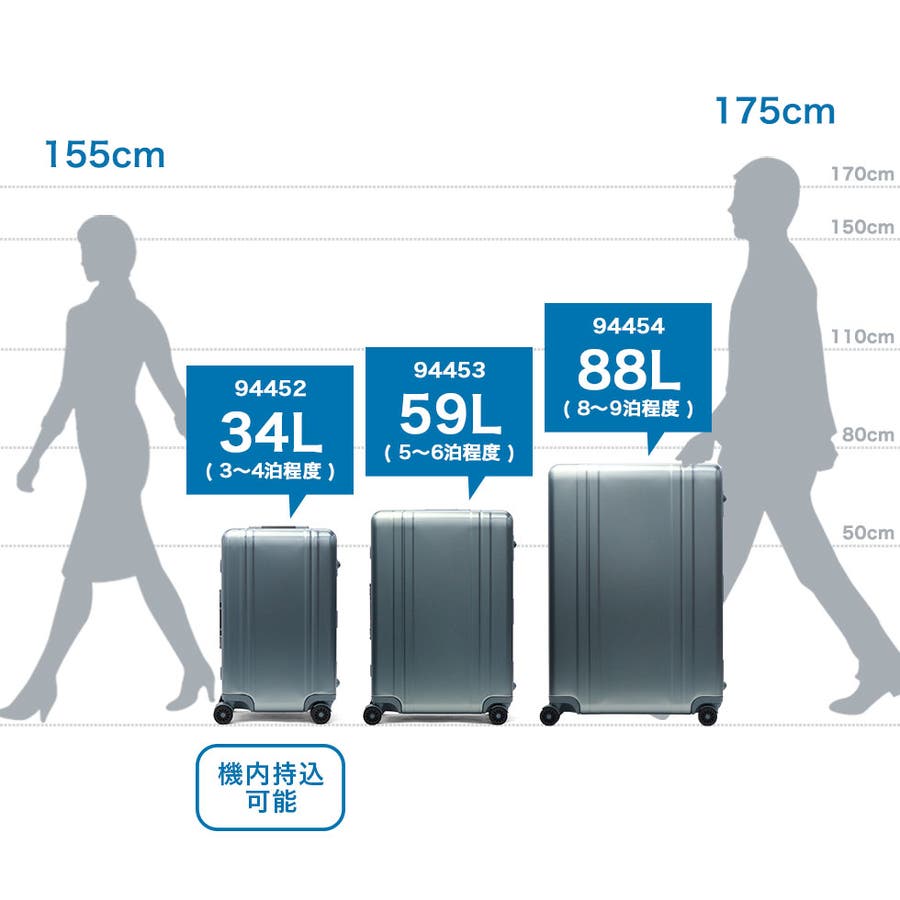 ・エキスパンダブル機能付きの製品は、マチ拡張時の3辺の和が機内持ち込みサイズ、預け入れ無料サイズを超える場合がございます。また、航空会社や飛行機の機種などによって規定が異なりますので、予めご確認の上お求めください。