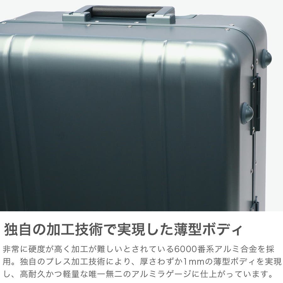 6000番系アルミ合金を採用し、伝統と革新を融合した『Heritage Line』。独自のプレス加工技術により、厚さわずか1mmの薄型ボディを実現し、強靭性と軽量性を両立しています。こちらは、5泊~6泊程度の旅行や出張に最適な59L容量モデル。コーナーガードのないシームレスなデザインと、ブランドの象徴のダブルリブが目を引く、唯一無二のアルミラゲージに仕上がっています。